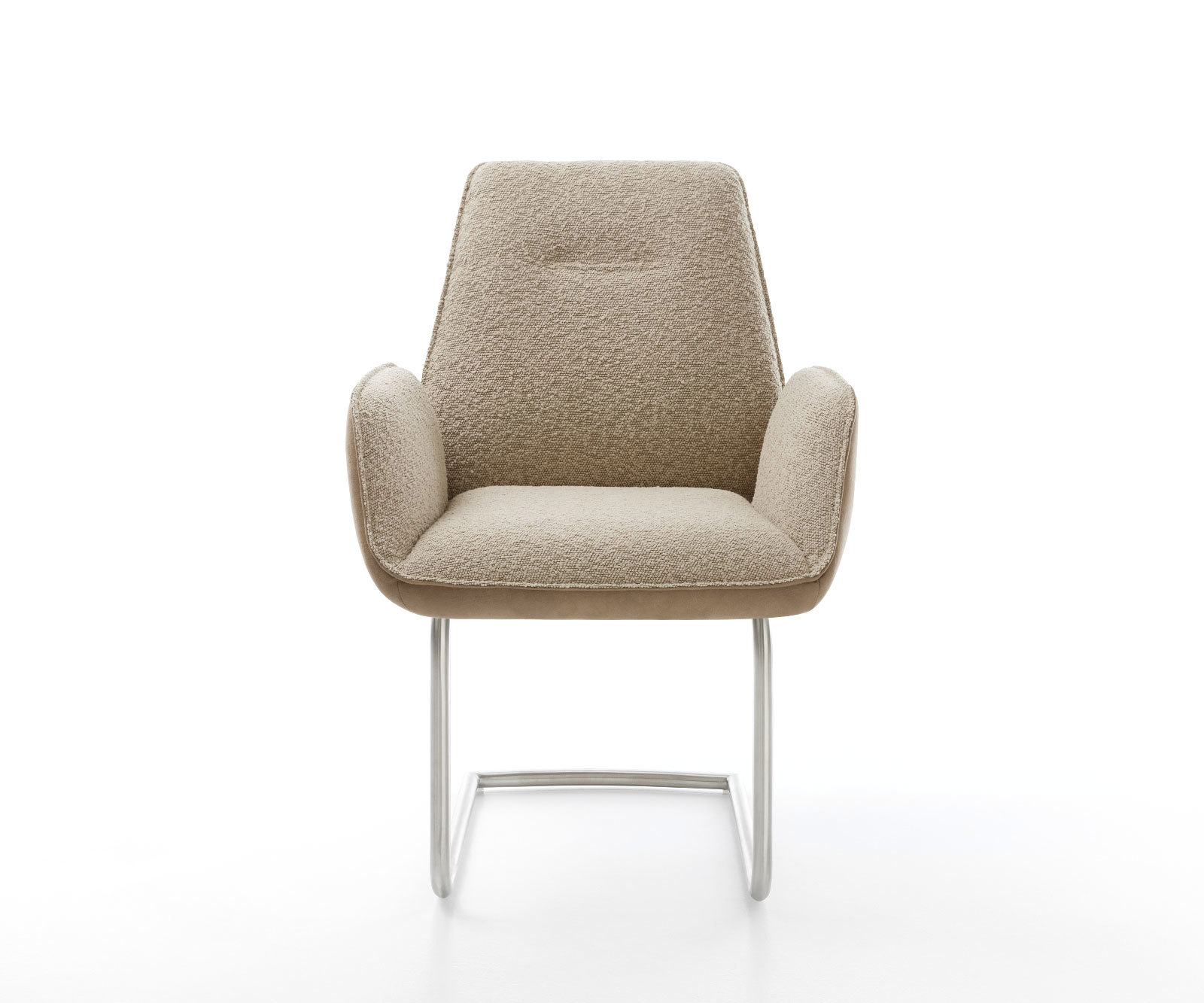 Egy izgalmas anyagkombináció, melynek külső oldala mikroszálas, belső része pedig bouclé, valódi must-have étkezőszékké varázsolja minden ízlésesen berendezett étkezőben. A két anyag használata vizuálisan különösen vonzó, akár egyedileg, akár ülőgarnitúraként.