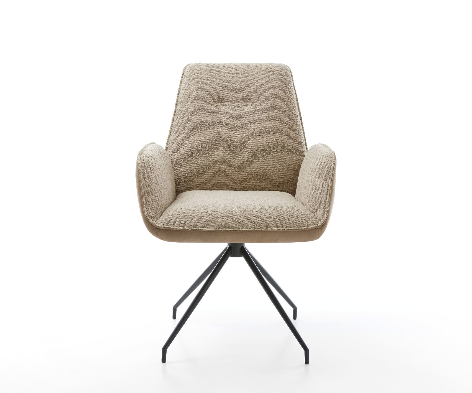 Egy izgalmas anyagkombináció, a külső oldalon mikroszálas és bouclé anyag teszi az étkezőszéket valódi must-have darabbá minden ízlésesen berendezett étkezőben. A két anyag használata vizuálisan különösen vonzó, akár egyedi darabként, akár ülőgarnitúraként.