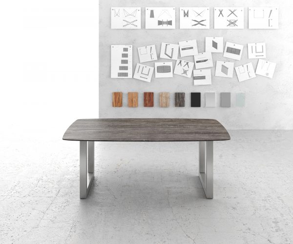 Široký ližinový rám ze skvěle zpracované nerezové oceli dotváří design stolu důsledně přitažlivým způsobem. Stříbrná hladká nerezová ocel totiž fascinujícím způsobem kontrastuje s působivými rysy stolové desky a podporuje její úžasný účinek mimořádně přitažlivým a harmonickým způsobem.