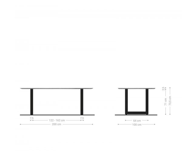 - Rozměry desky stolu: Š200 x D100 x H2,5 cm