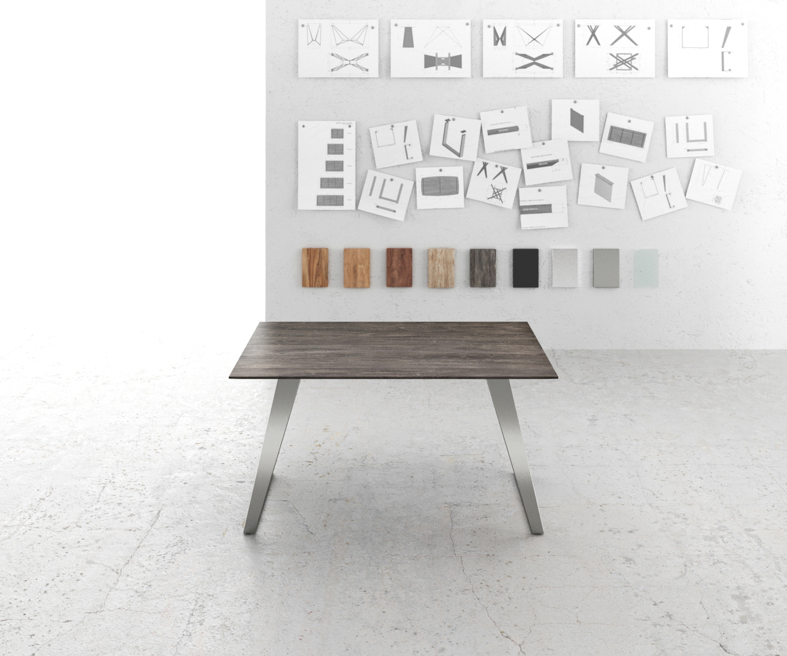 Šikmý skluzný rám z vysoce kvalitní nerezové oceli umně vytváří kulisu stolové desce a zároveň vytváří vlastní živé akcenty. Kartáčovaná nerezová ocel je mimořádně odolná a nejlépe se hodí k dalším výtvorům z nerezové oceli.