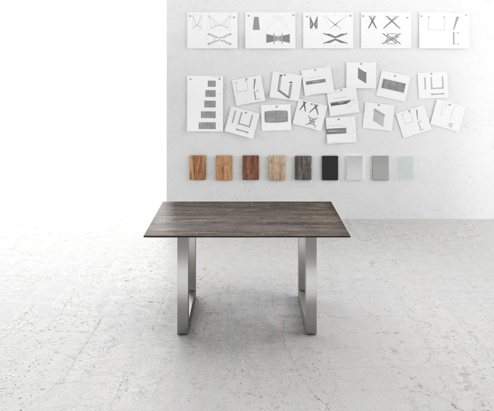 Jídelní stůl Edge 140x90 akácie platina nerezová ocel široká švýcarská hrana