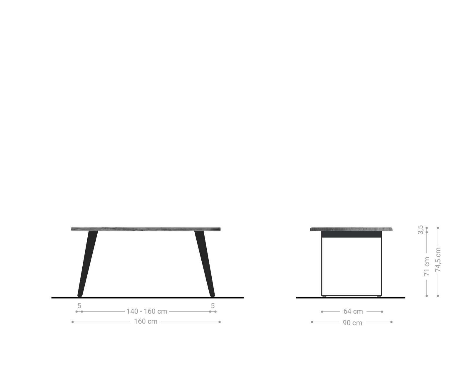 • Rozměry desky stolu: B160 x D90 x V3,5 cm