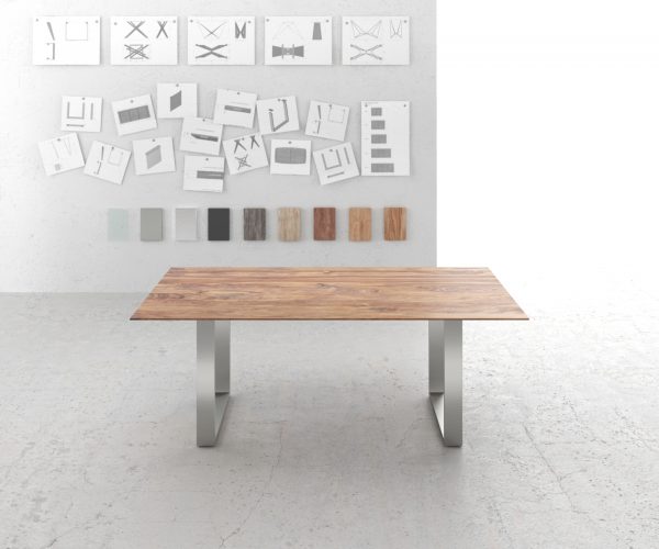 Jídelní stůl Edge 200×100 sheesham přírodní nerezová ocel úzká švýcarská hrana