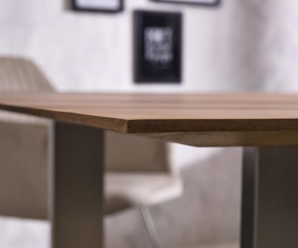 Stůl Edge ze sheeshamu se švýcarskou hranou – harmonie kontrastů
