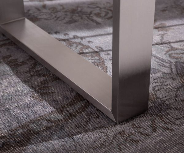 Díky štíhlému podstavci z nerezových saní si právem vyberete jeden z našich nejoblíbenějších stolů z řady Edge. Protože skvěle zpracovaný rám ve stříbrné barvě se dokonale hodí ke každému stylu interiéru a dodává stolu šikovný nádech rustikální přirozenosti a přitažlivé elegance.