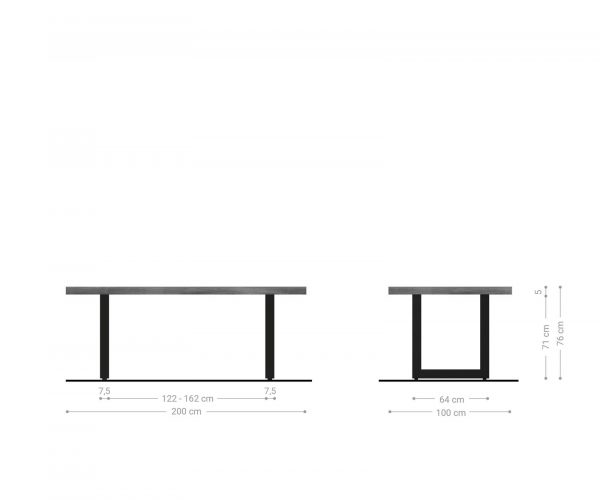 - Rozměry desky stolu: Š200 x D100 x V5 cm