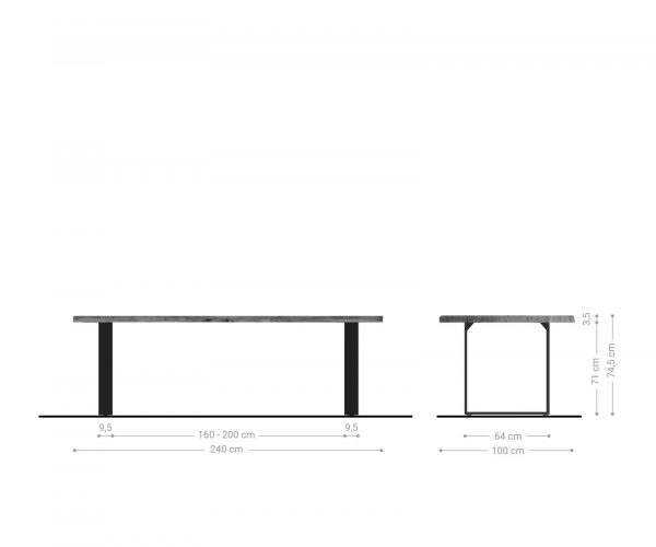 • Rozměry desky stolu: B240 x D100 x V3,5 cm