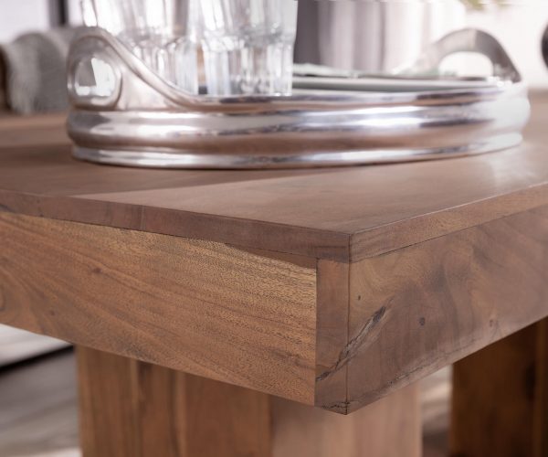Náš jídelní stůl z akácie má díky svému neobvyklému pojetí magickou přitažlivost. Má rovnou linii a je proveden jako dvousloupový stůl. Dva masivní sloupy podpírají desku stolu s velkorysými rozměry. U tohoto jídelního stolu můžete stolovat s dětmi, příbuznými nebo přáteli v družné společnosti.