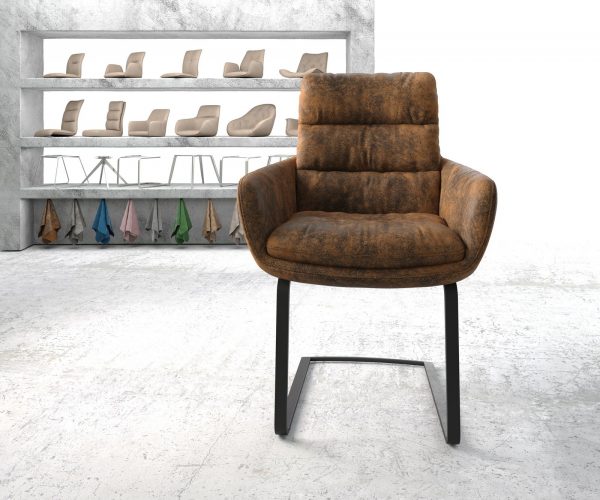 Jídelní židle Abelia s područkami z mikrovlákna hnědá antická – židlový systém DELIFE