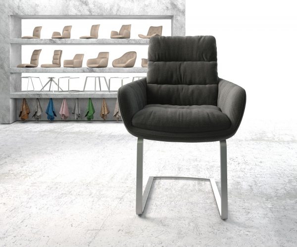 Jídelní židle Abelia s područkami s texturovanou látkou v antracitové barvě – systém židlí od DELIFE