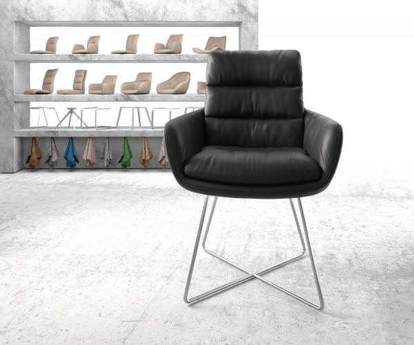 Jídelní židle Abelia s područkami z pravé kůže černá – židlový systém DELIFE