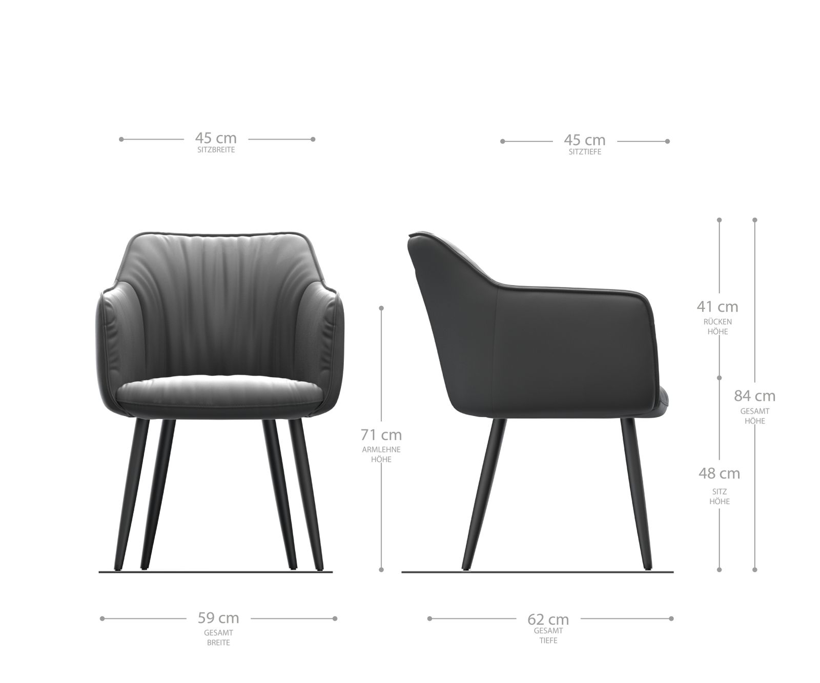 Klasická čtyřnohá podnož s kuželovitým tvarem zajišťuje nejen bezpečné postavení, ale působí také mimořádně elegantním dojmem. Nohy židle se směrem dolů zužují, díky čemuž působí elegantněji a filigránštěji.