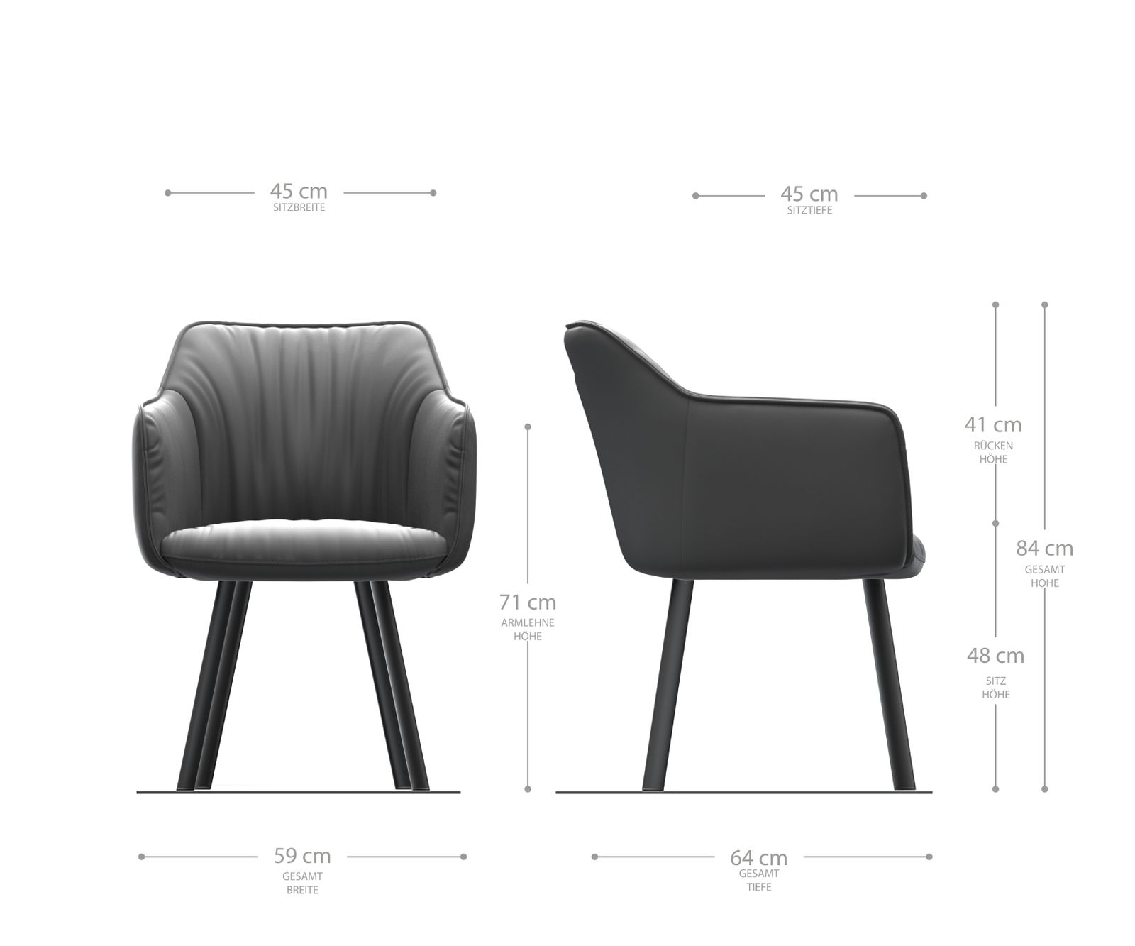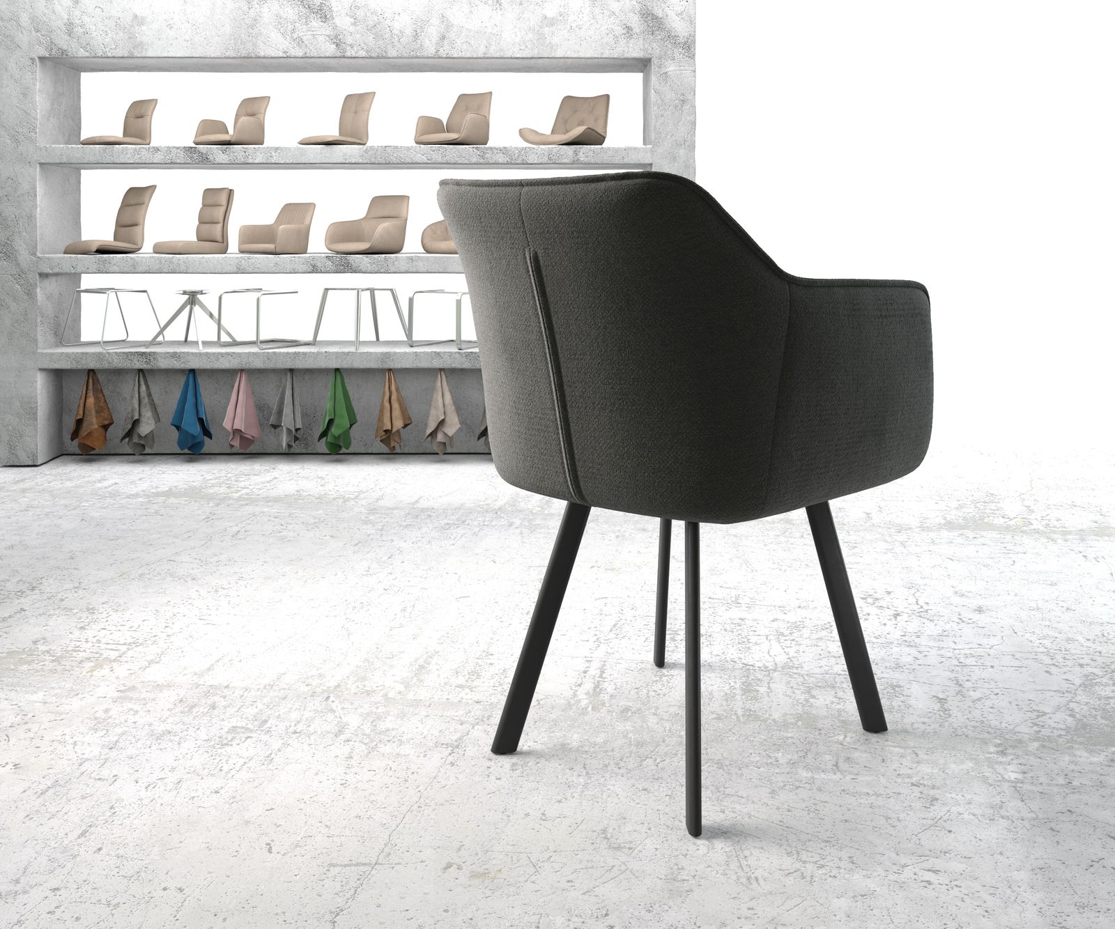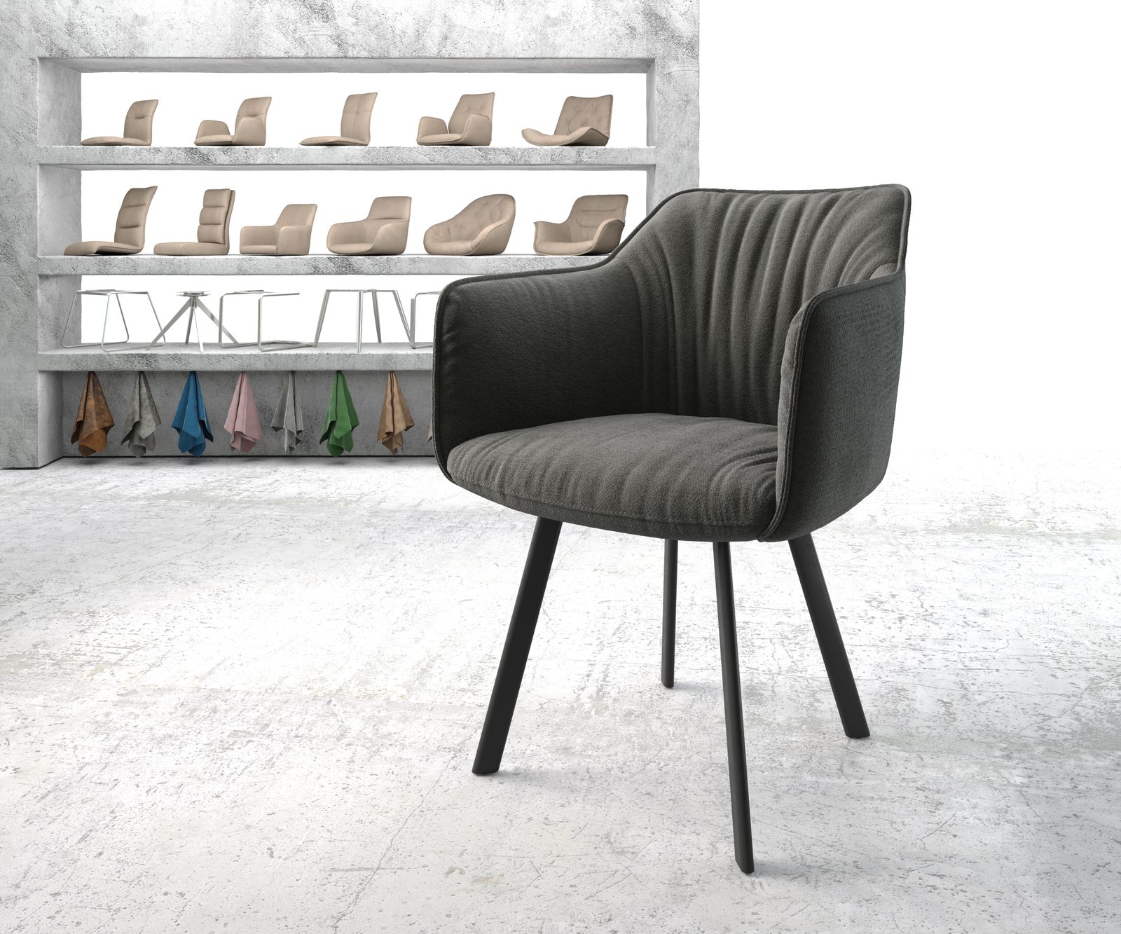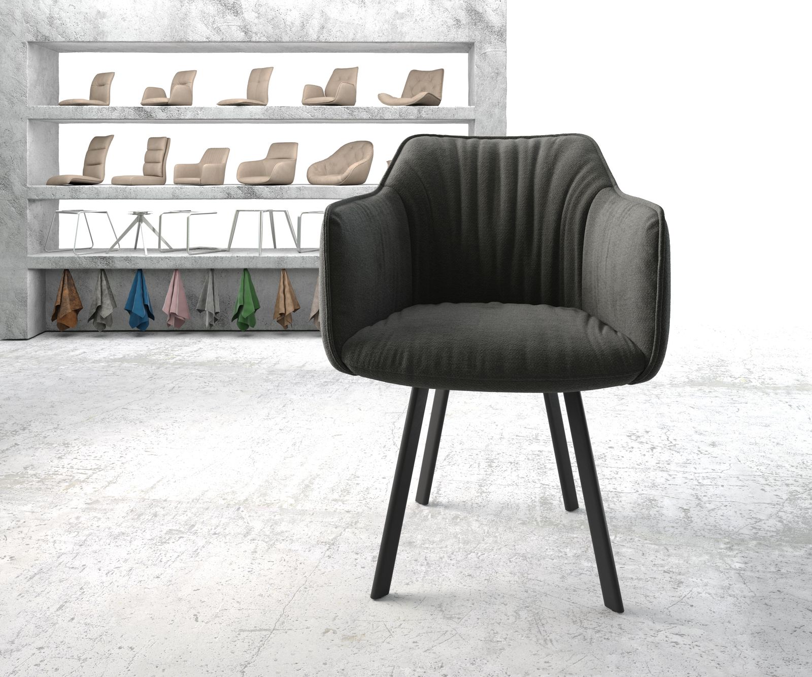 Jídelní židle Elda s područkami z texturované látky v antracitové barvě – systém židlí DELIFE