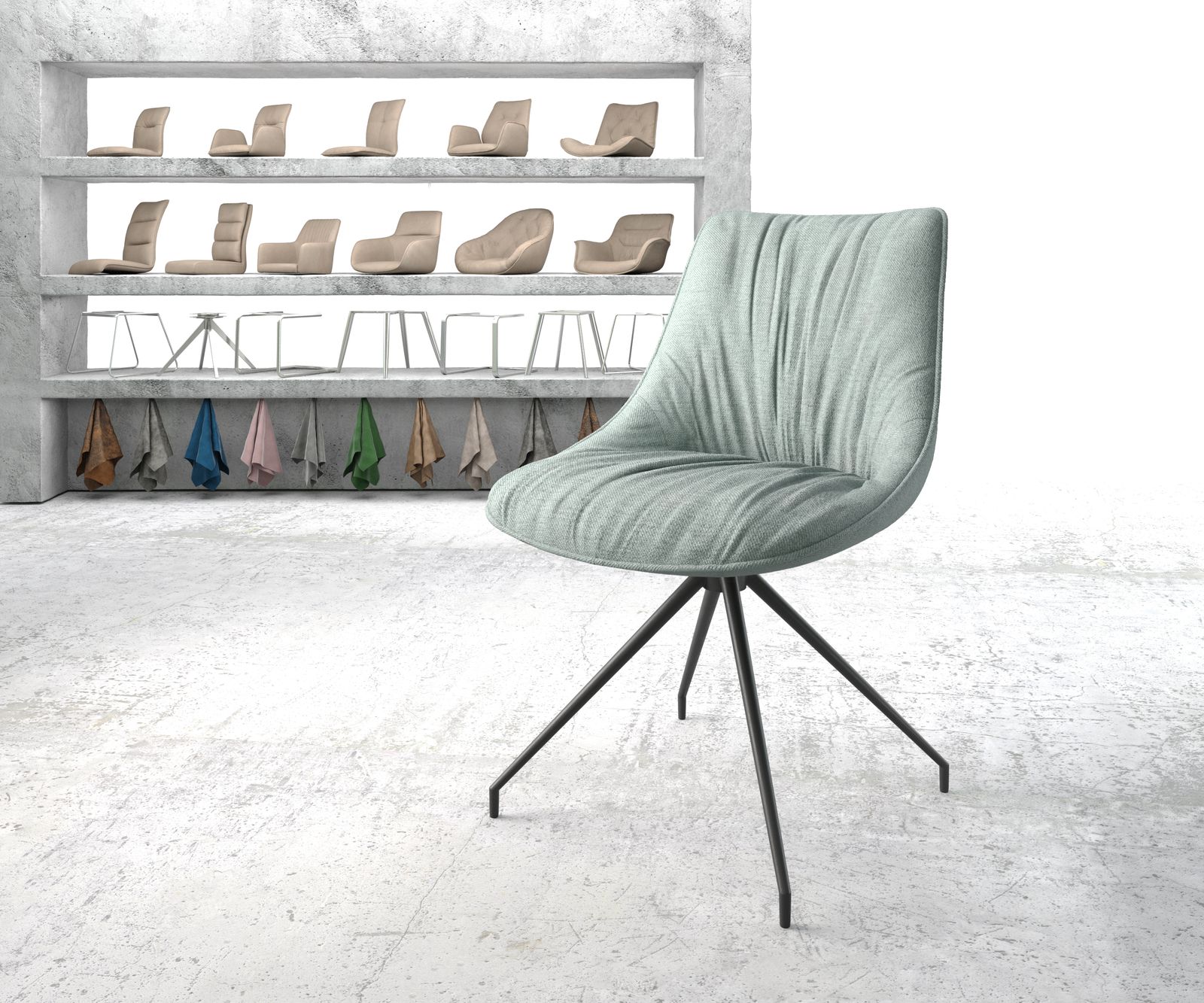 Jemně tkaná tkanina s texturou zaujme svým pružným omakem a elegantní, jemnou mátovou barvou, která se krásně hodí k mnoha různým stylům vybavení.