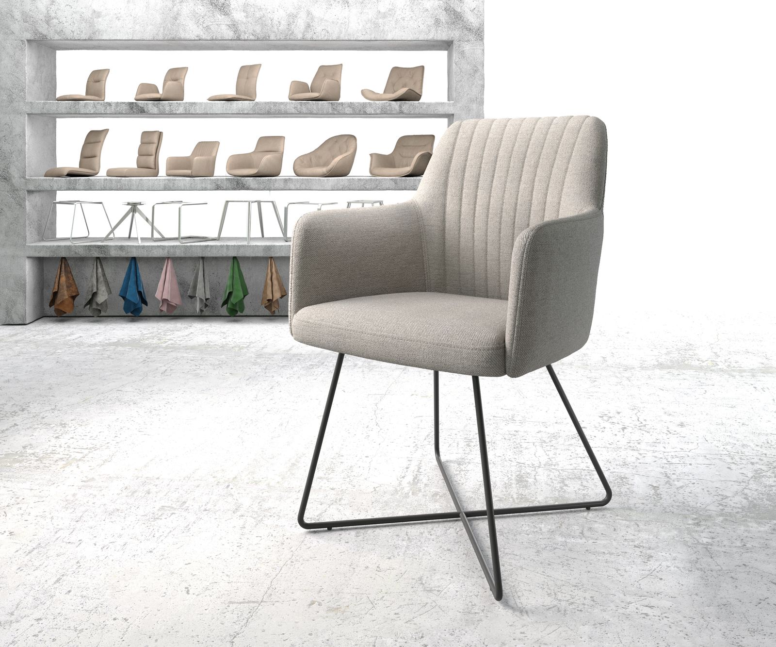 Díky svému klasickému tvaru a průběžným područkám je Greg nejen velmi elegantní, ale také mimořádně pohodlný a nenáročný na záda. Jemné svislé prošívání na opěradle stylově dotváří celkový elegantní dojem z této nadčasové židle.