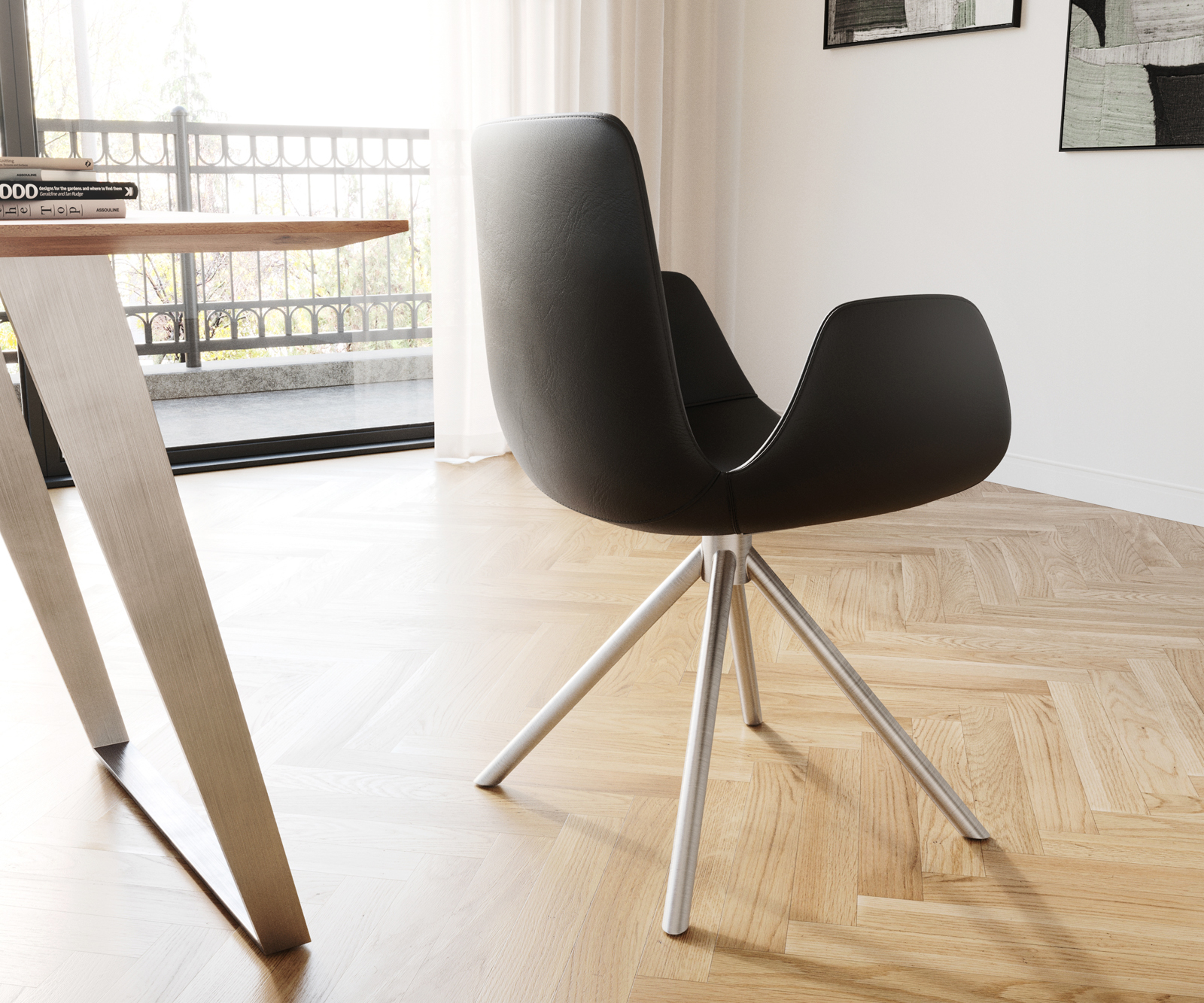Jídelní židle Ilia s područkami z pravé kůže černá – systém židlí DELIFE