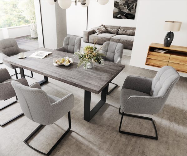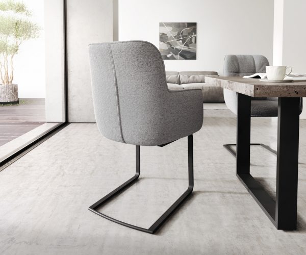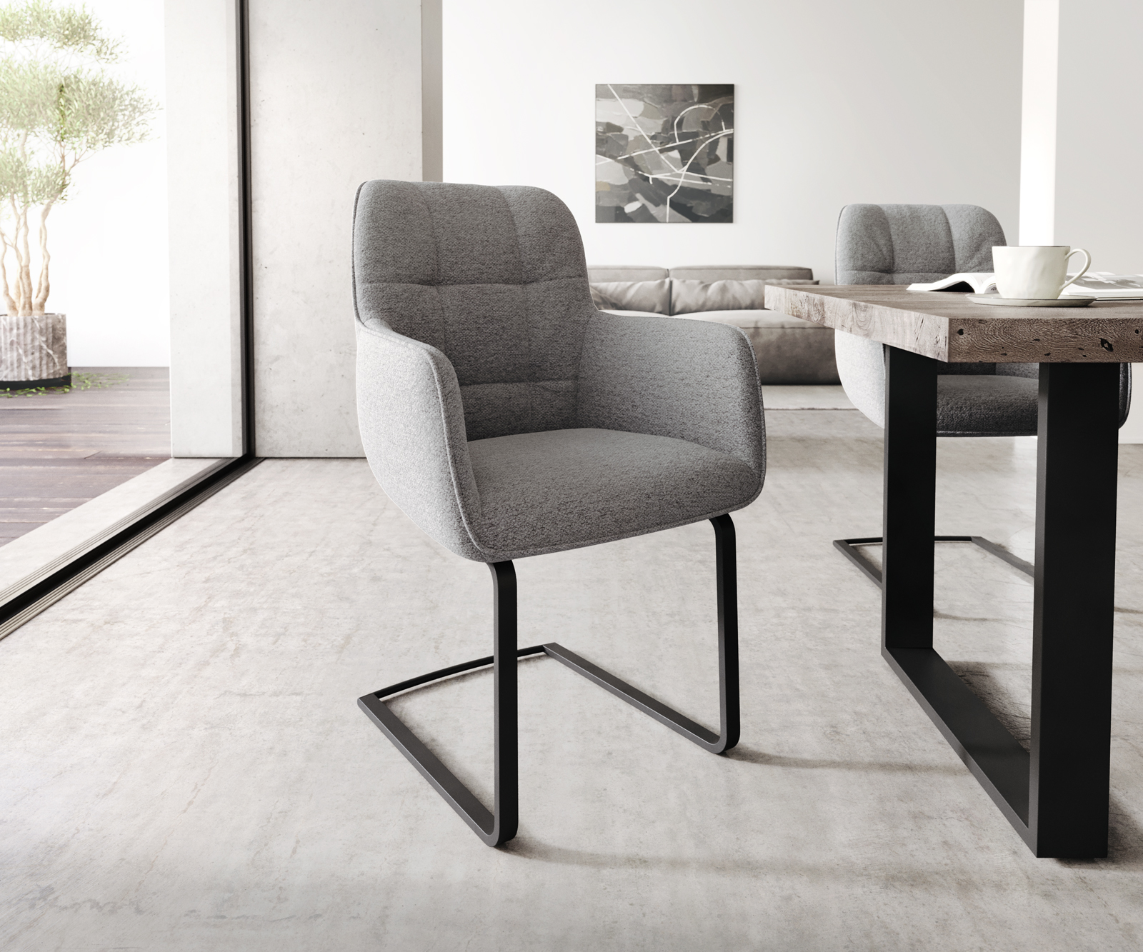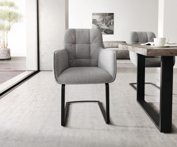 Jídelní židle Juno s područkami ve světle šedé texturované látce – židlový systém od DELIFE