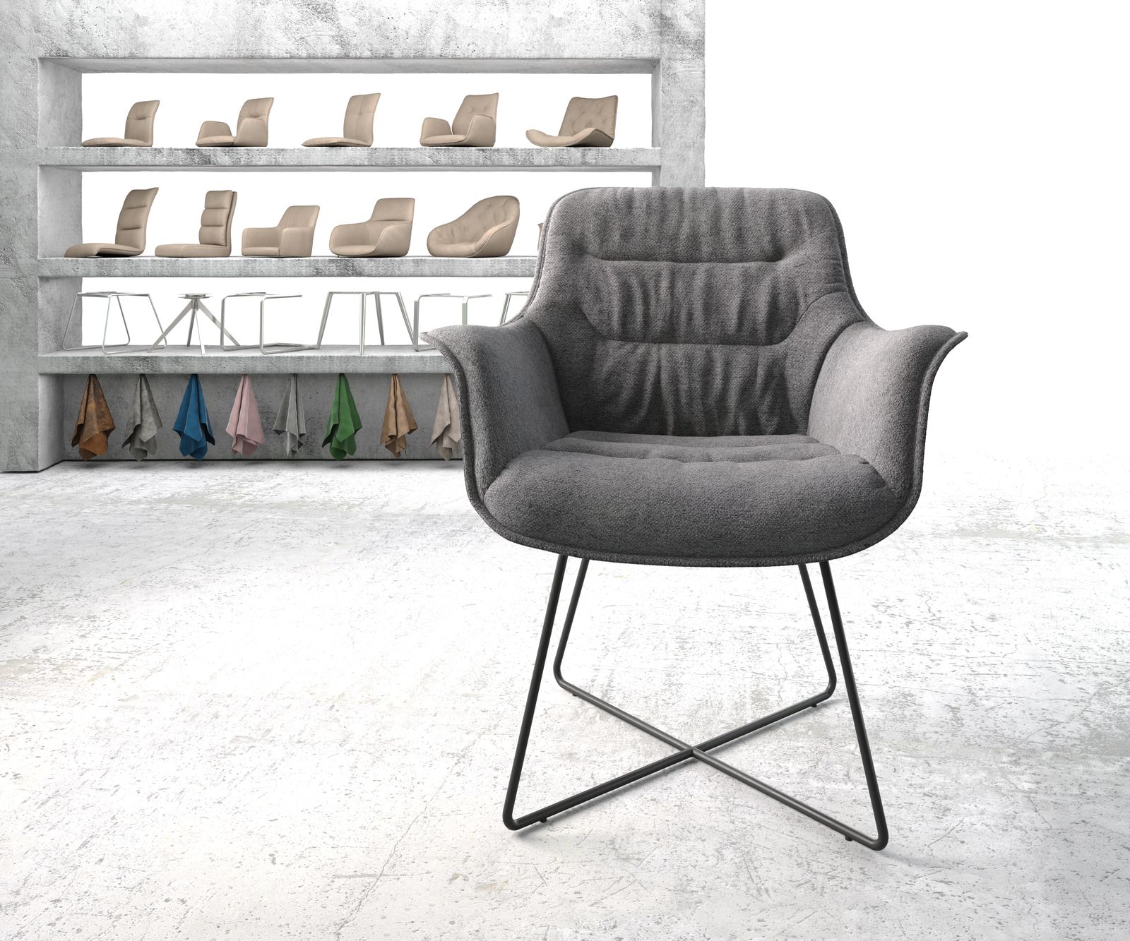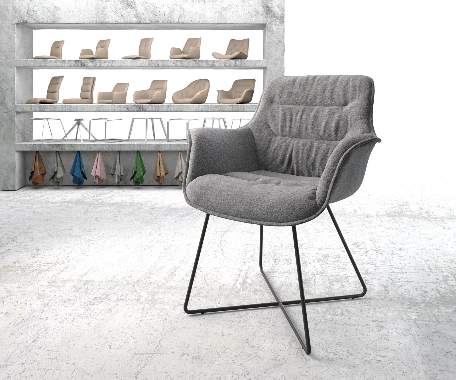 Jídelní židle Kaira s texturovanou látkou světle šedá – židlový systém DELIFE