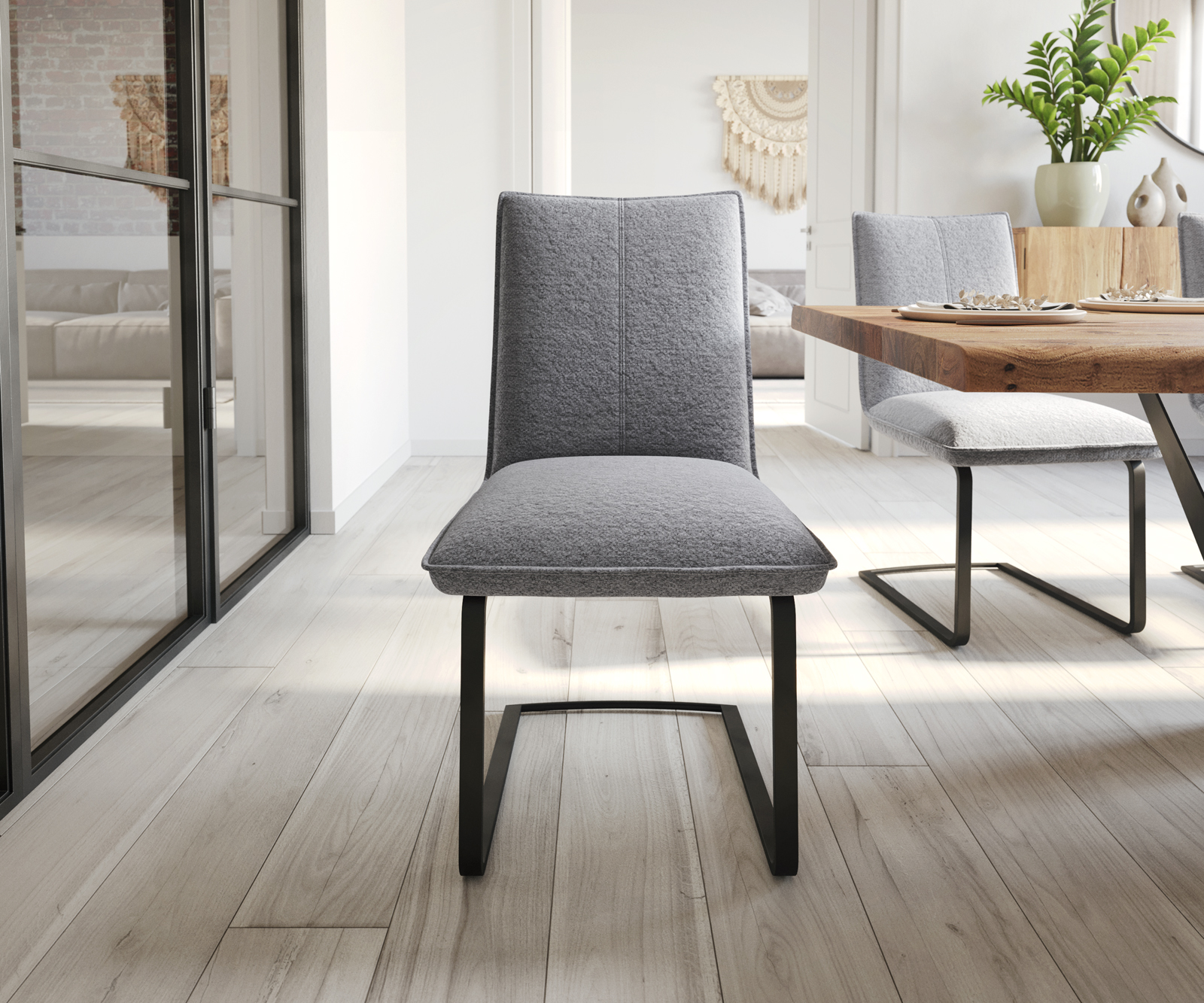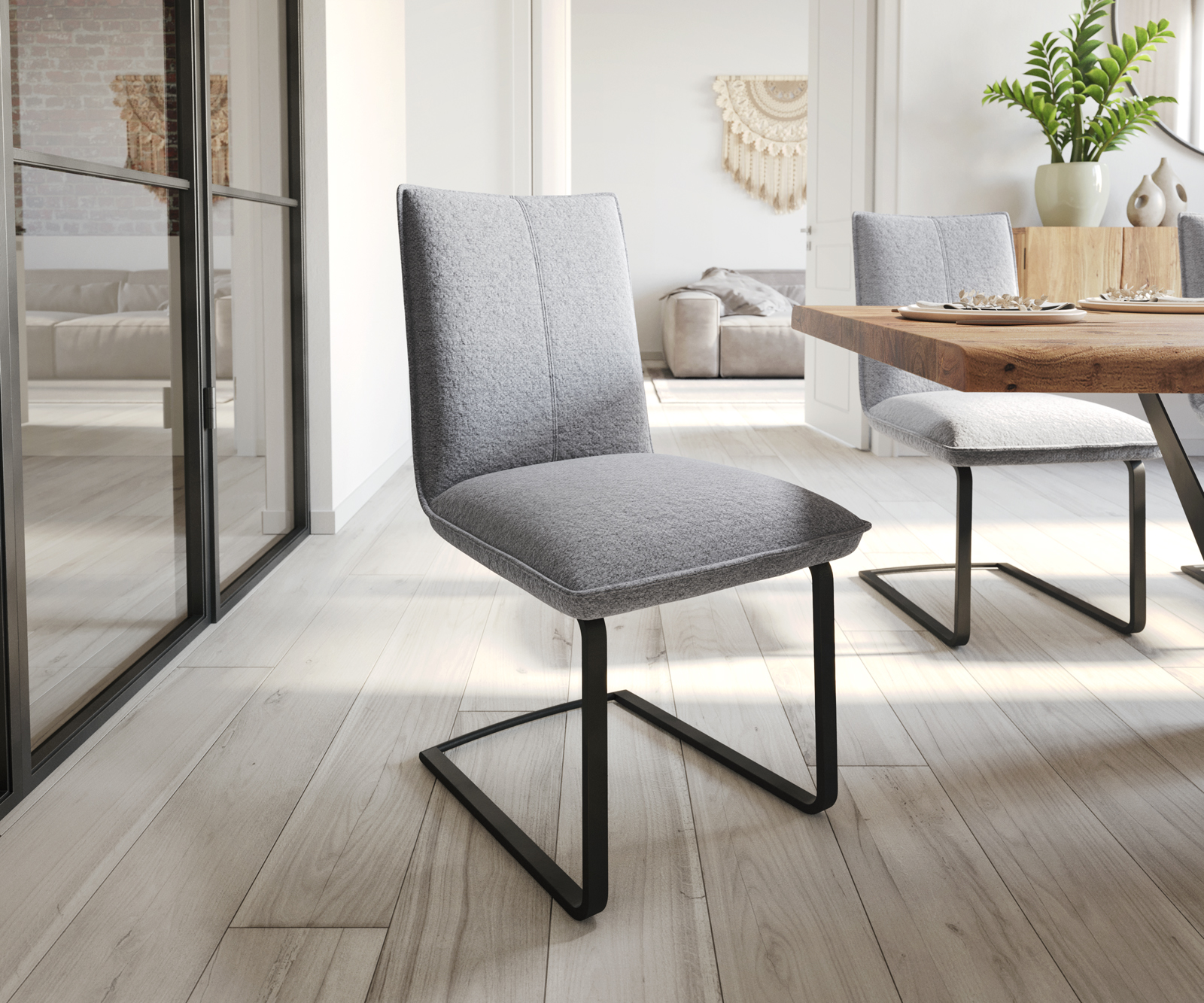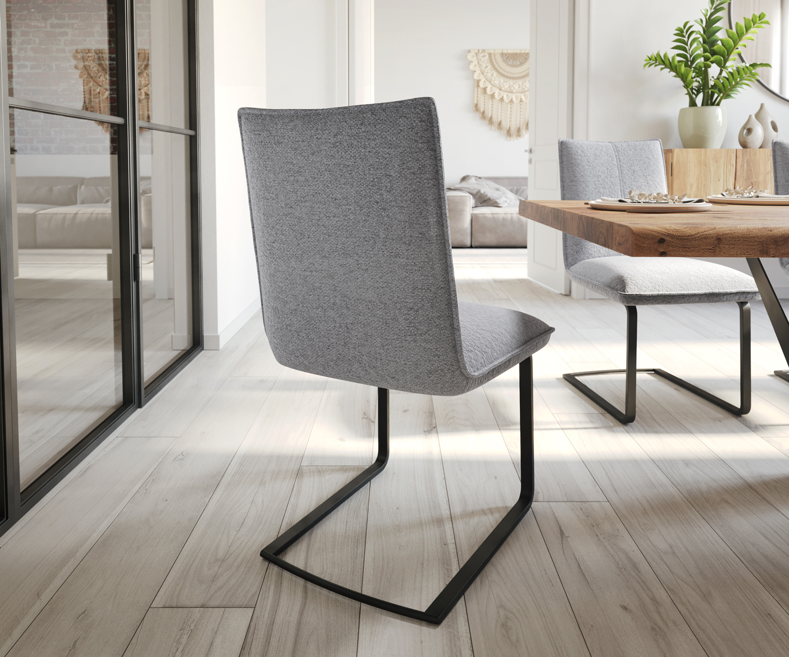 Jídelní židle Lelio-Flex konzolová podnož plochá černá strukturovaná tkanina světle šedá