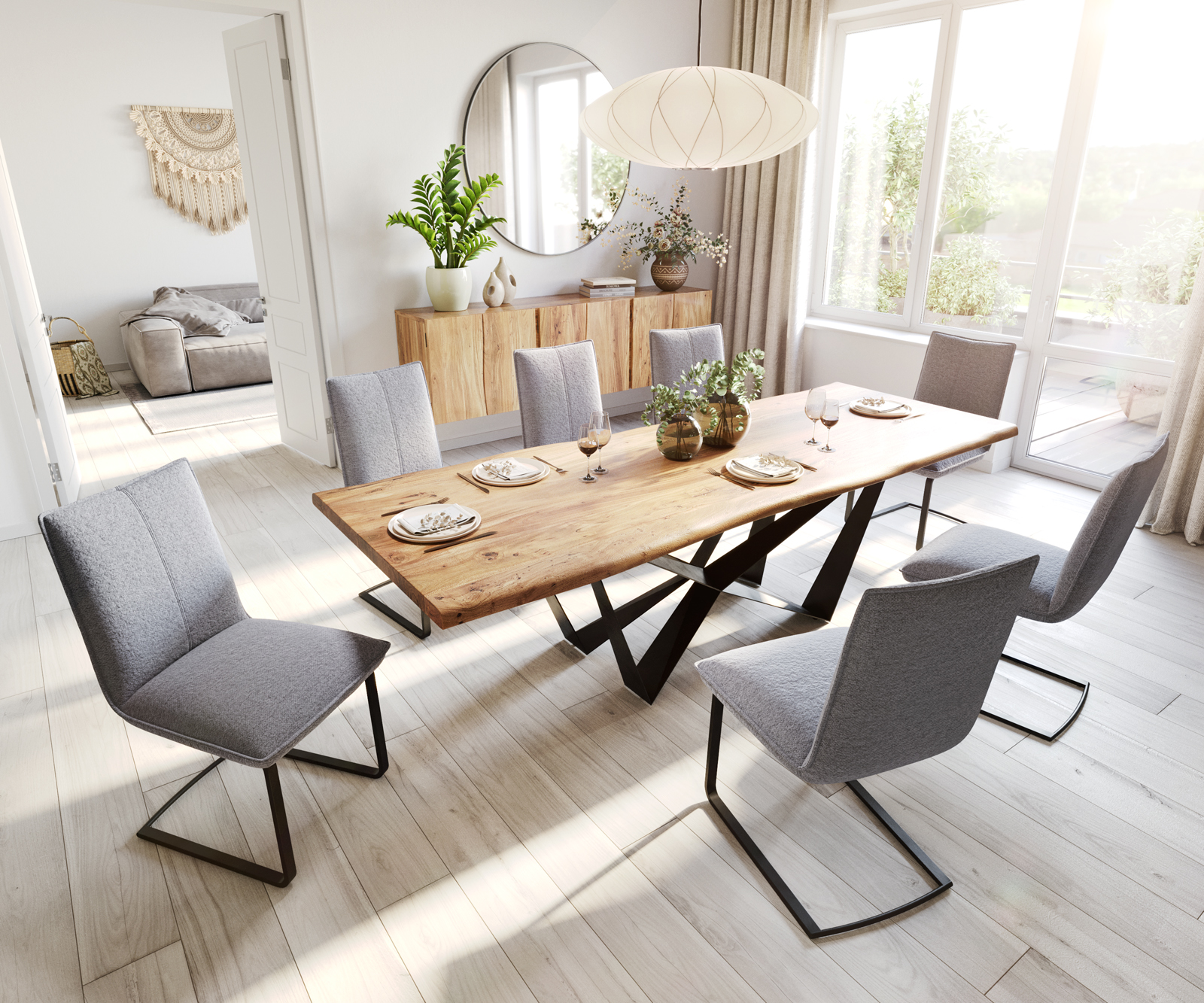Jídelní židle Lelio s texturovanou látkou světle šedá – systém židlí DELIFE