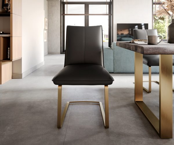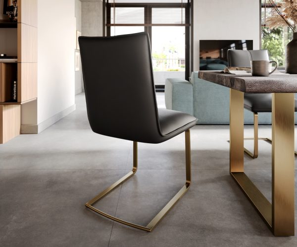 Jídelní židle Lelio-Flex konzolová podnož plochá zlatá pravá kůže černá