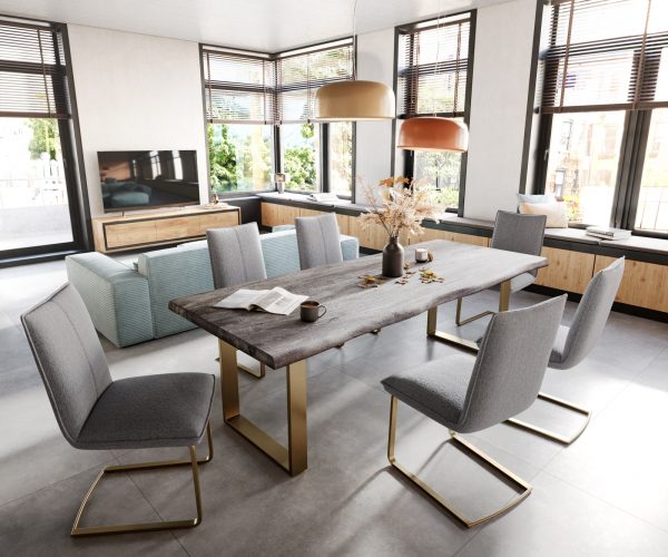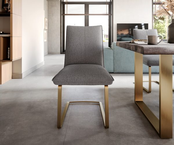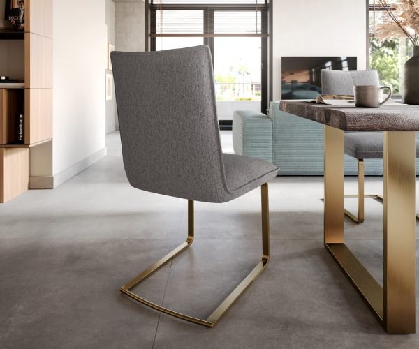 Jídelní židle Lelio-Flex konzolová podnož plochá zlatá texturovaná tkanina světle šedá