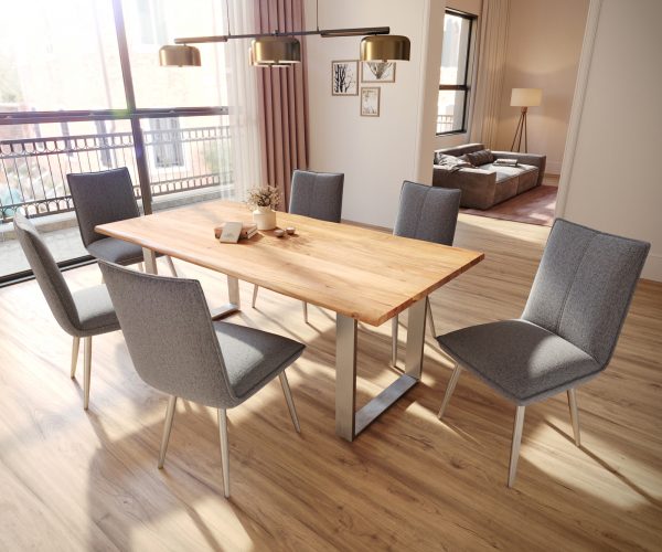 Jídelní židle Lelio s texturovanou látkou světle šedá – systém židlí DELIFE