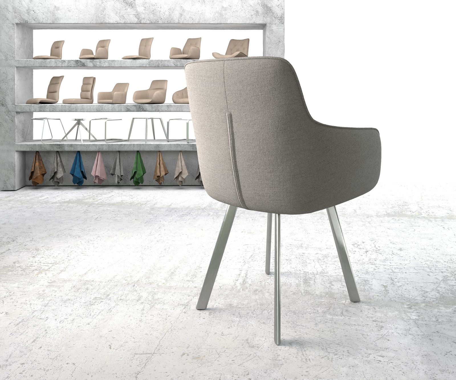 Jídelní židle Pejo-Flex světle šedá plochá tkanina oválná podnož nerezové oceli
