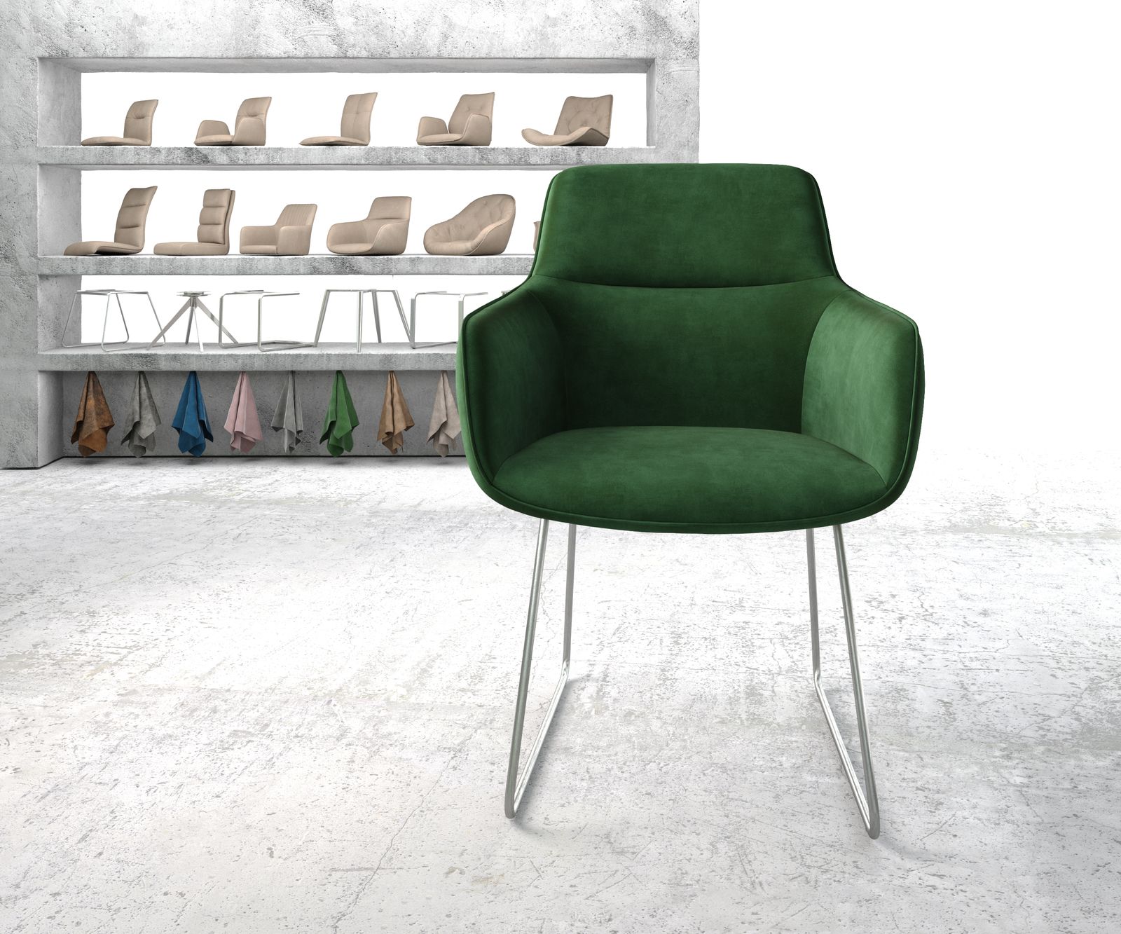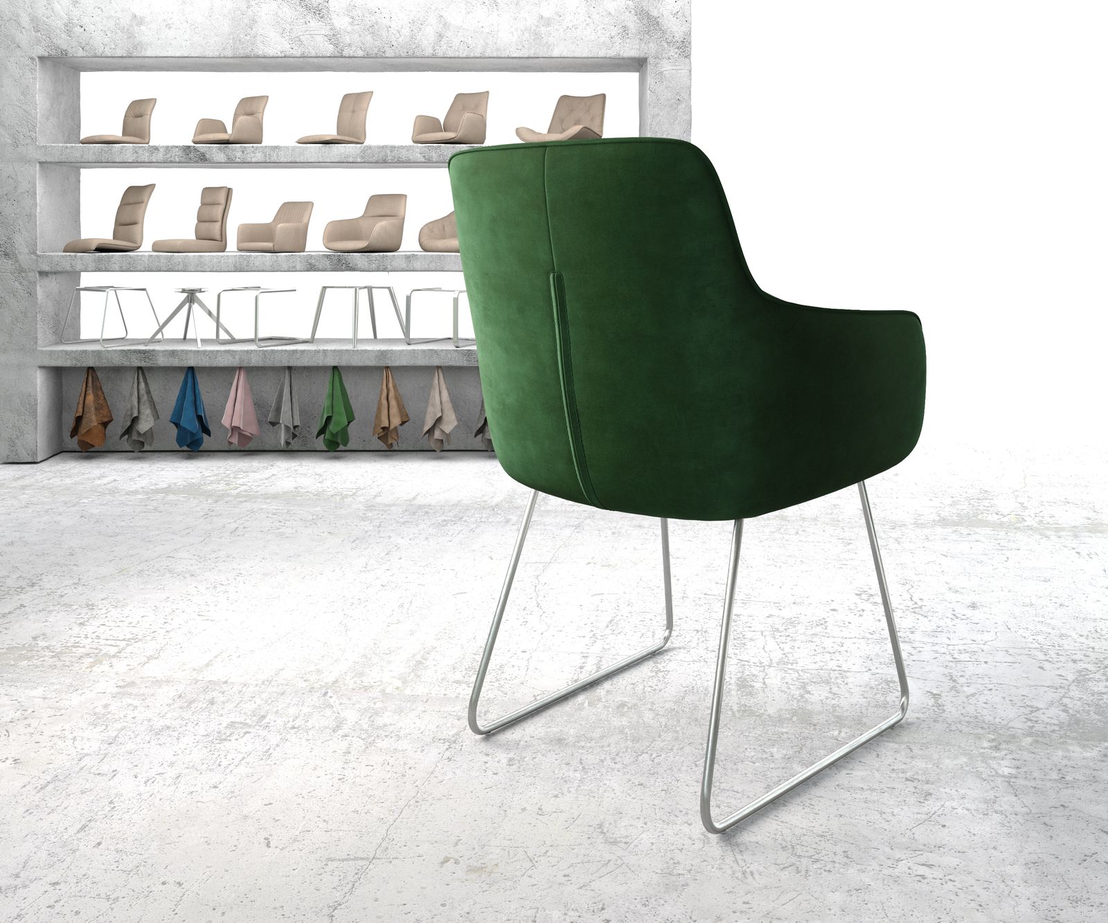 Se sametem v tomto nadčasovém zeleném odstínu budete přímo trendy! Protože samet inspiruje svou měkkostí a obzvlášť ušlechtilým, jemně lesklým vzhledem. Díky použití moderních materiálů pro výrobu sametu je původně velmi jemná látka nyní mnohem odolnější a vhodná jako potahová látka na židle.