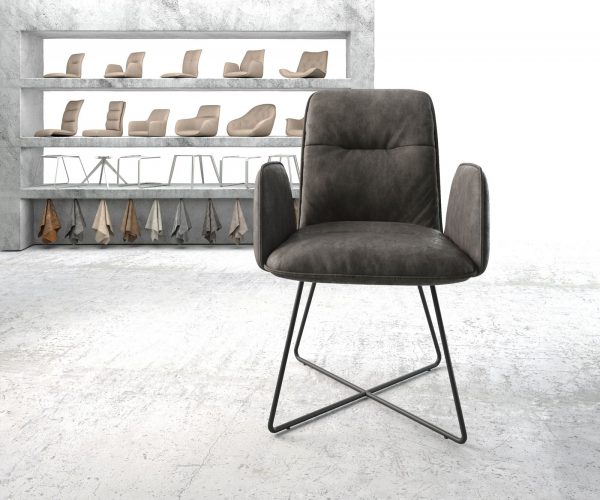 Jídelní židle Vinja-Flex antracitová vintage podnož ve tvaru „X” černý