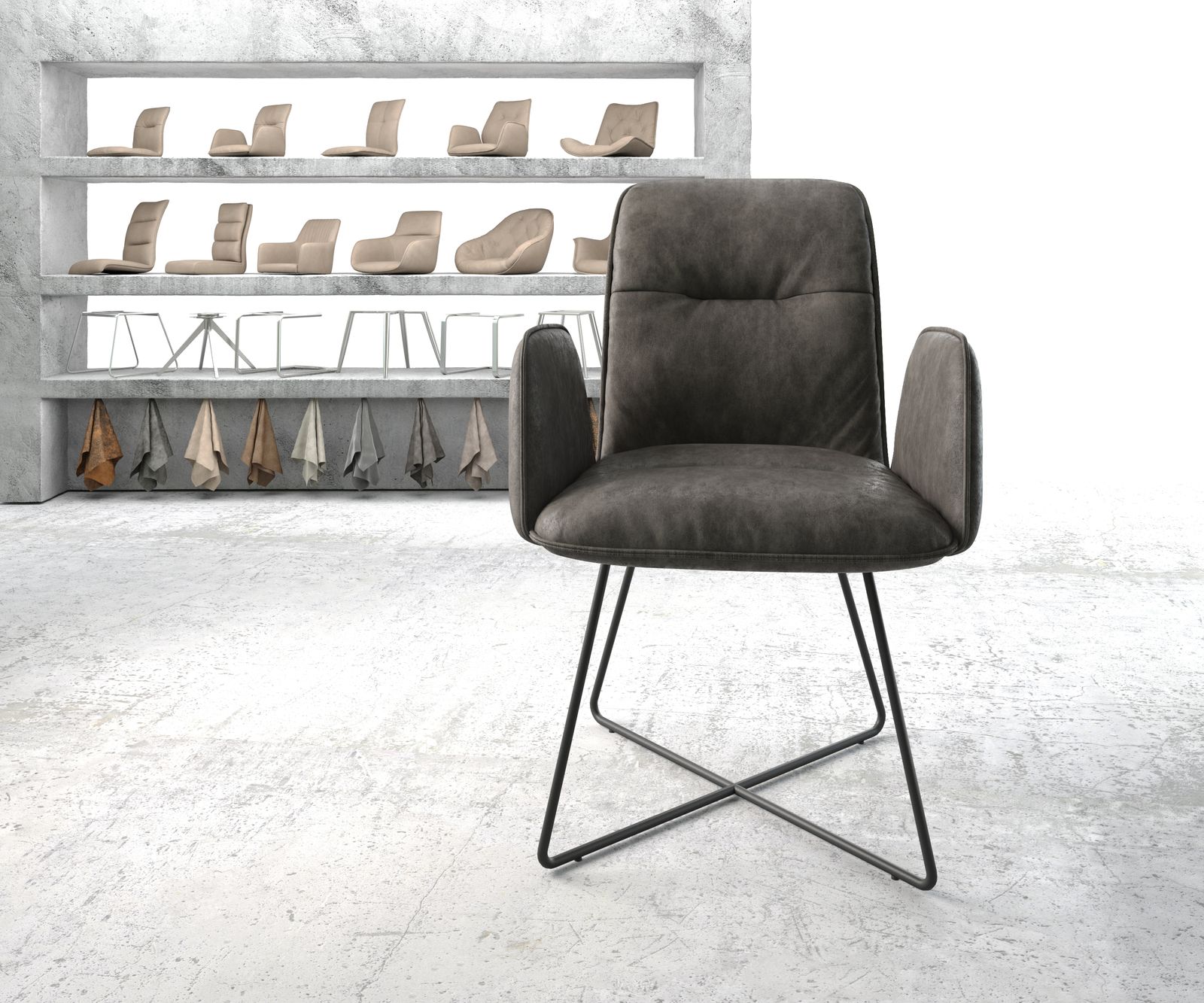 Jídelní židle Vinja-Flex antracitová vintage podnož ve tvaru "X" černý