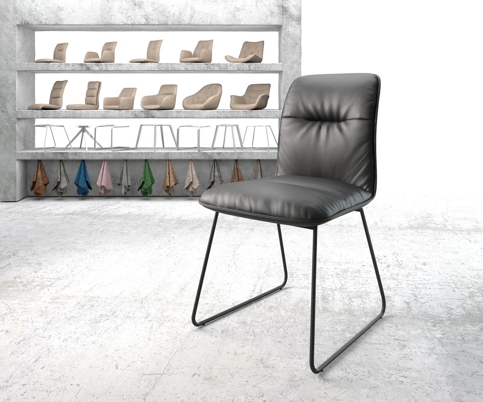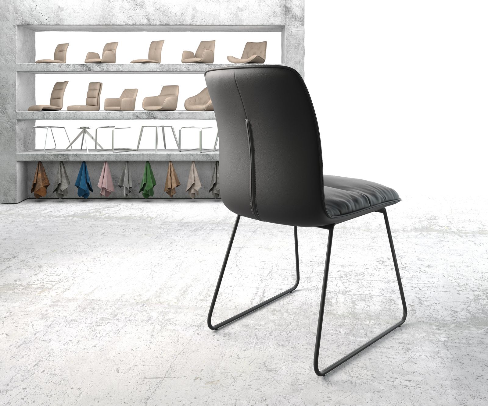 Jídelní židle Vinjo z pravé kůže černá – židlový systém DELIFE