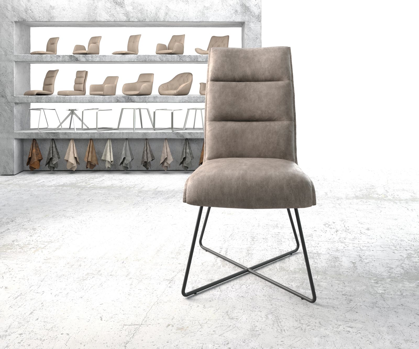 Jídelní židle Xantus z mikrovlákna taupe vintage – systém židlí od DELIFE
