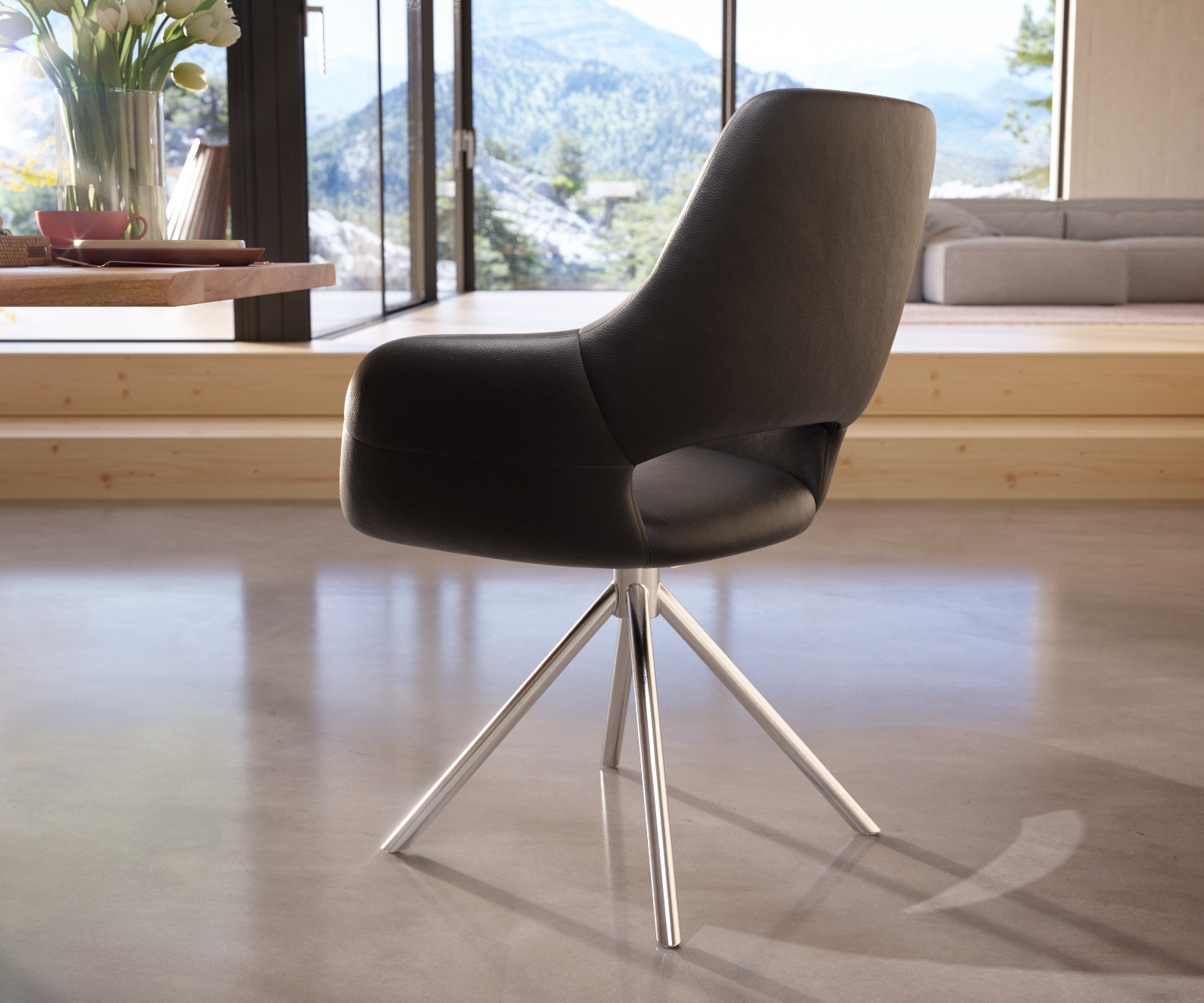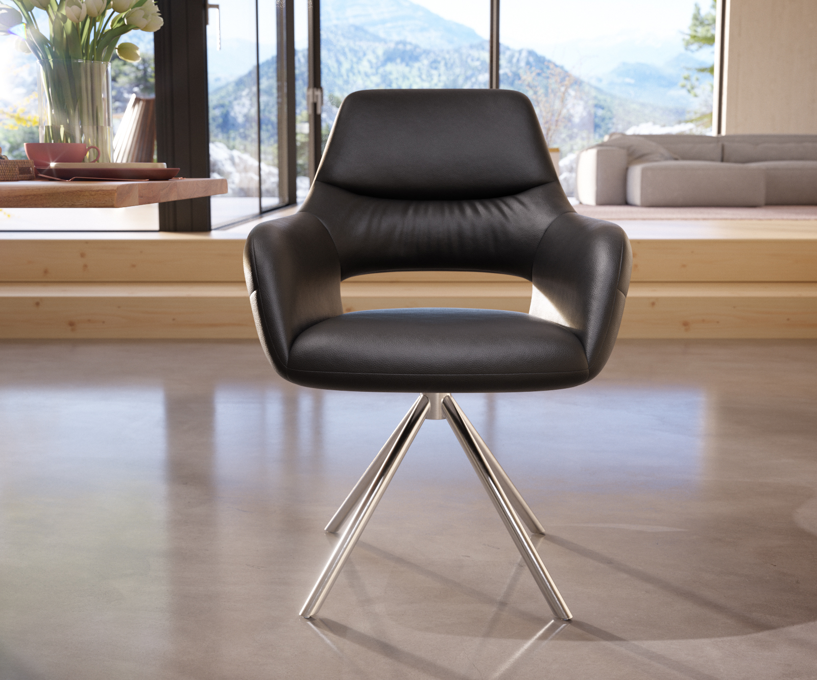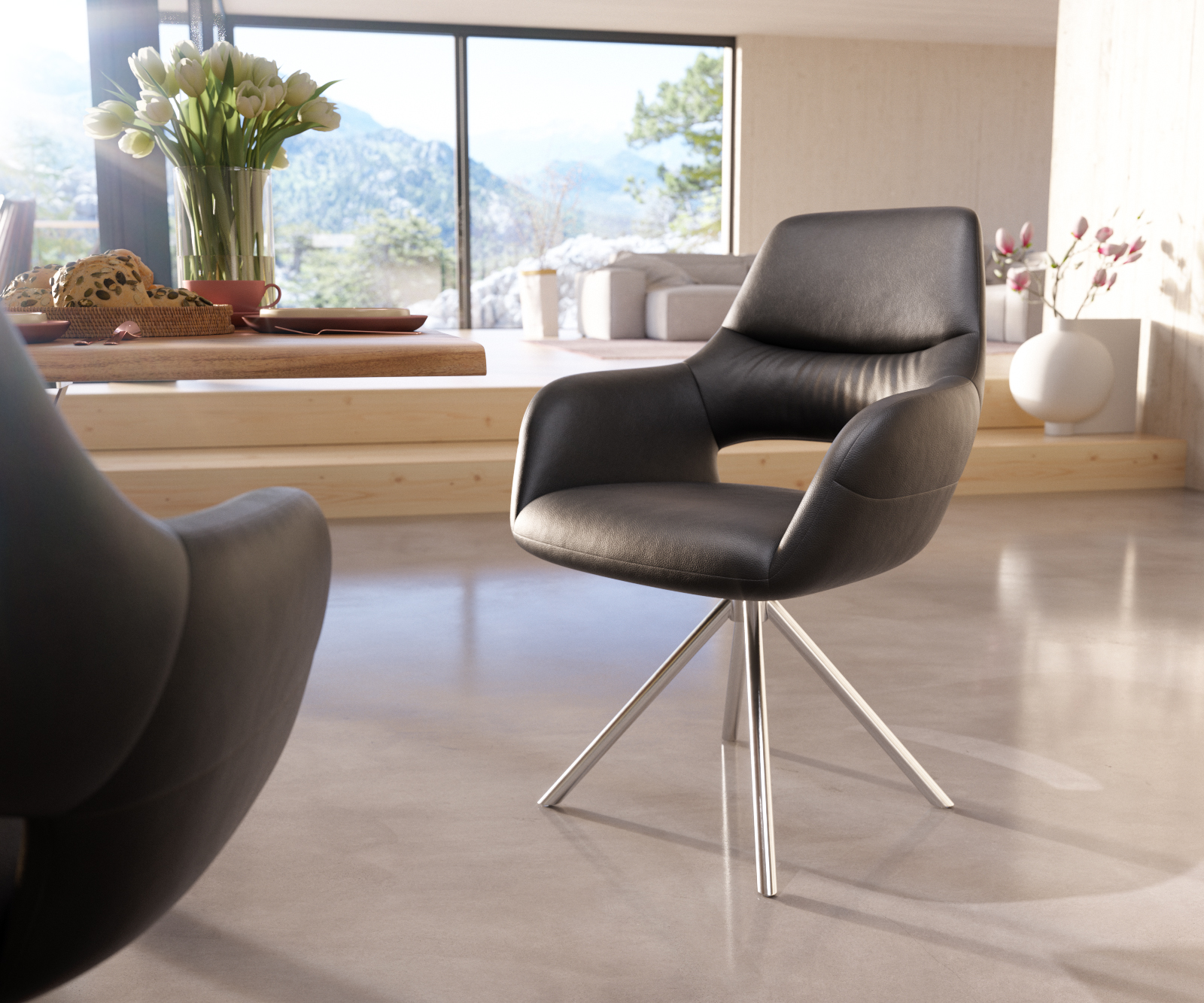 Jídelní židle Yago s područkami z pravé kůže černá – systém židlí DELIFE
