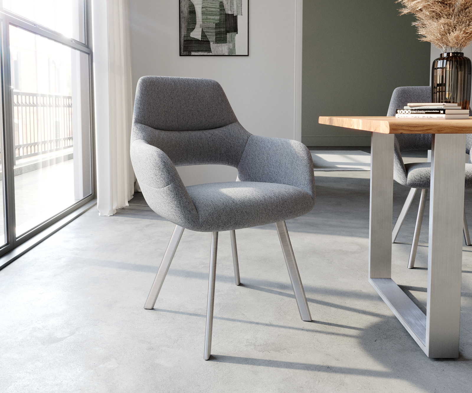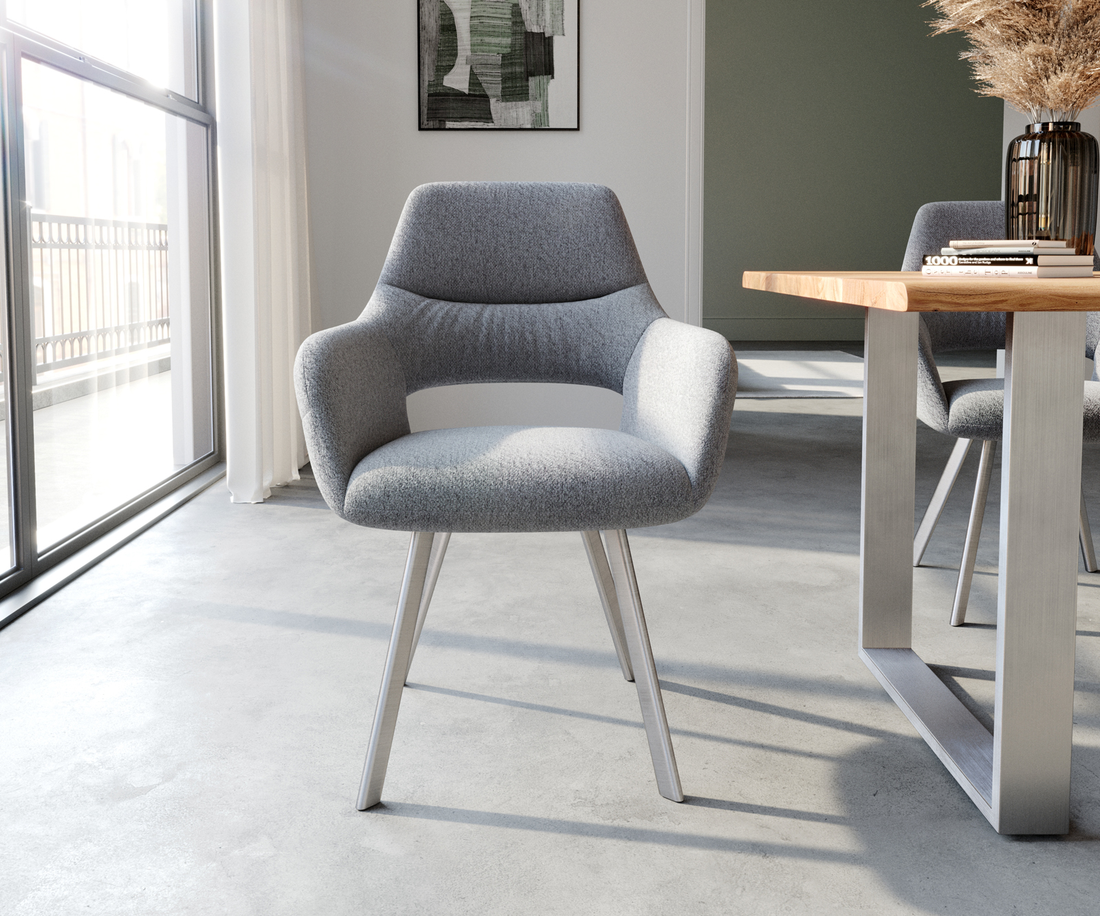 Jídelní židle Yago s XL sedákem a područkami ve světle šedé texturované látce – židlový systém DELIFE
