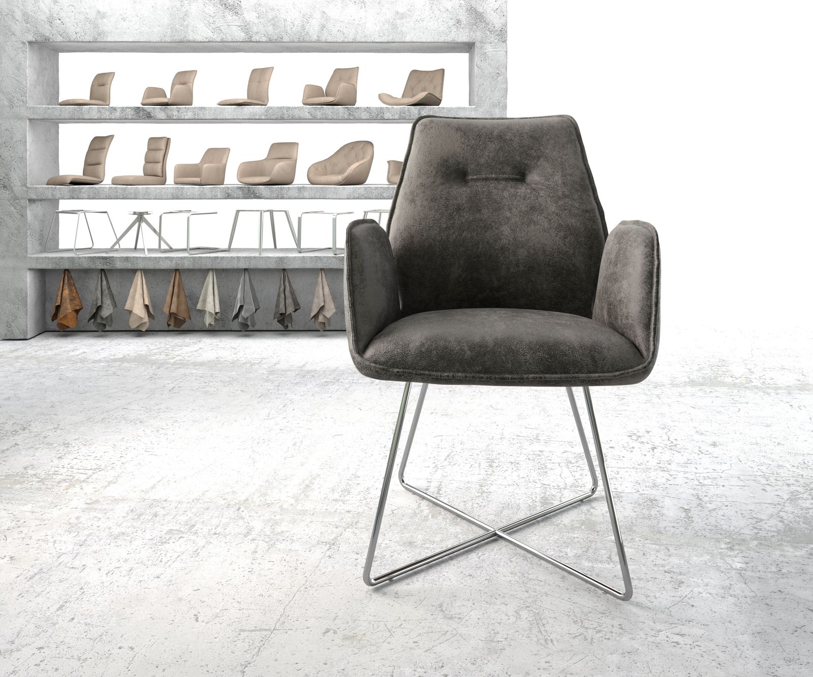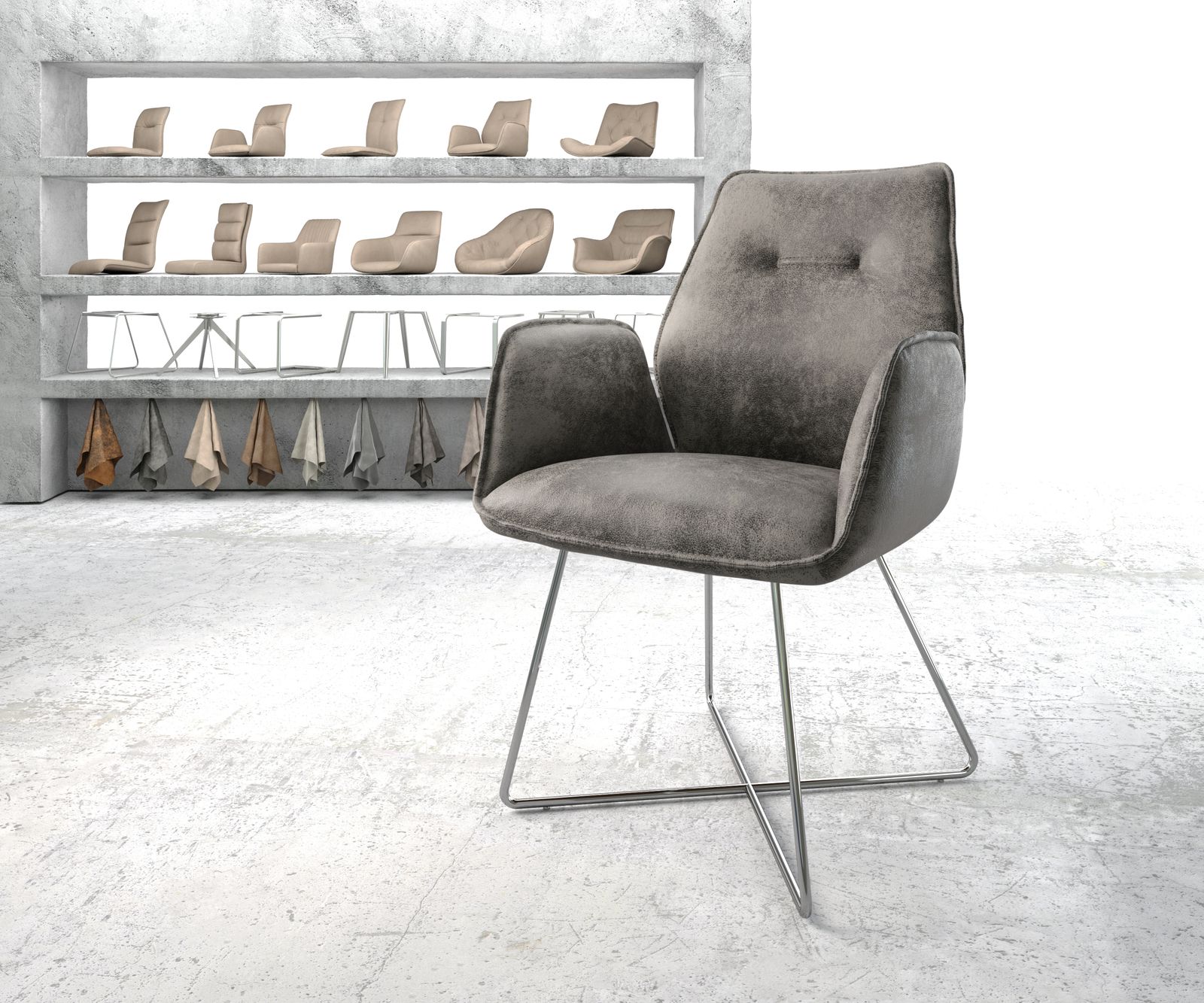 Jídelní židle Zoa Microfibre Grey Antique – systém židlí od DELIFE