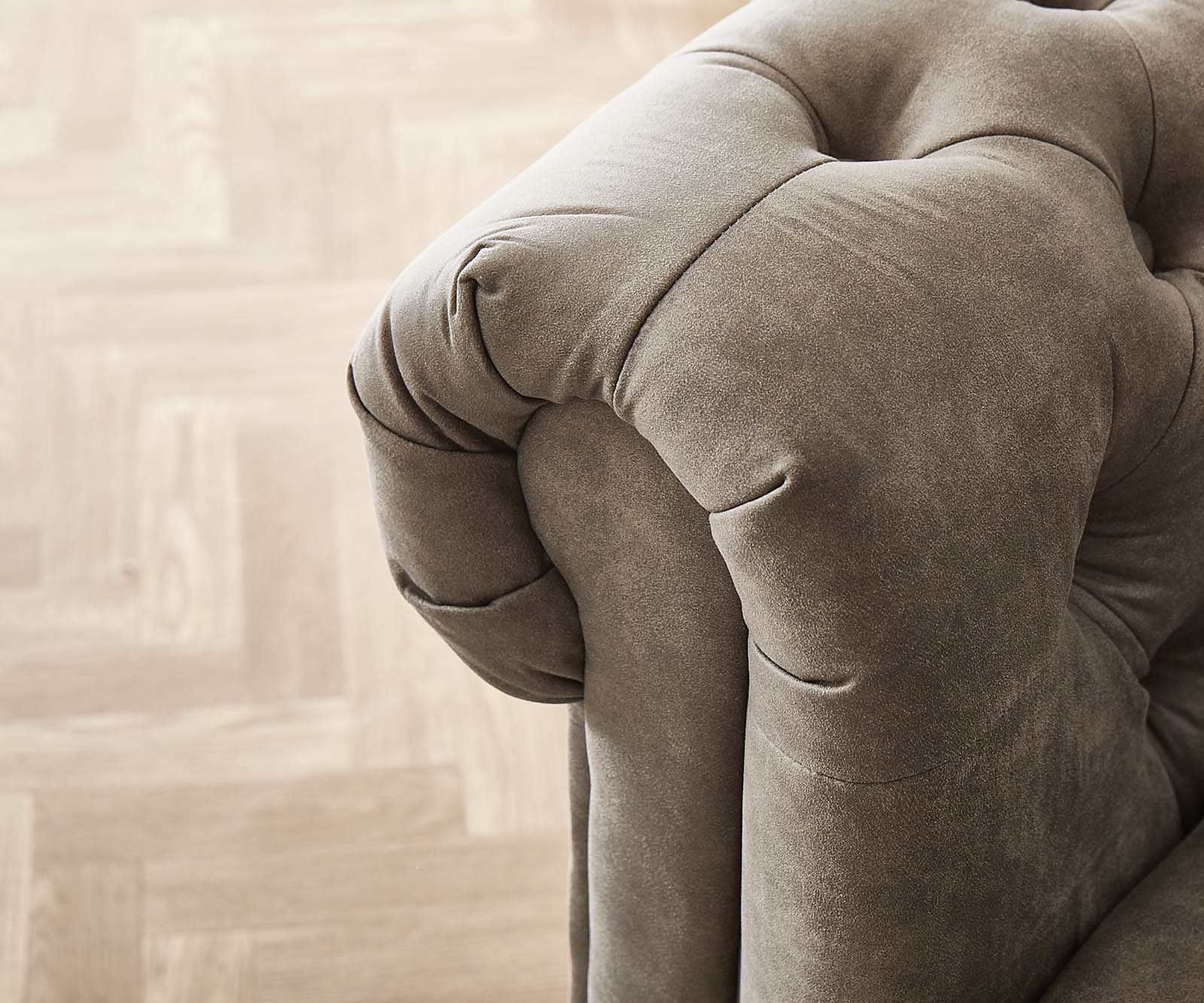 Ez a gondosan megmunkált kanapé egy olyan bútor, amely időtlen eleganciájának köszönhetően minden lakberendezési trendet túlél. Mint tágas 3 személyes modell, a luxus Chesterfield kárpitozott bútorok stílusában készült elegáns darab a nappalid központi látványosságává válik. Finom taupe színben jelenik meg, amely harmonikusan egészíti ki az egyszerűbb és élénk, színes árnyalatokban berendezett tereket egyaránt. A divatos, vintage hatású huzat színárnyalata meglepően modern módon emeli ki a jellegzetes, gyémánt alakban steppelt és párnázott háttámlákat.