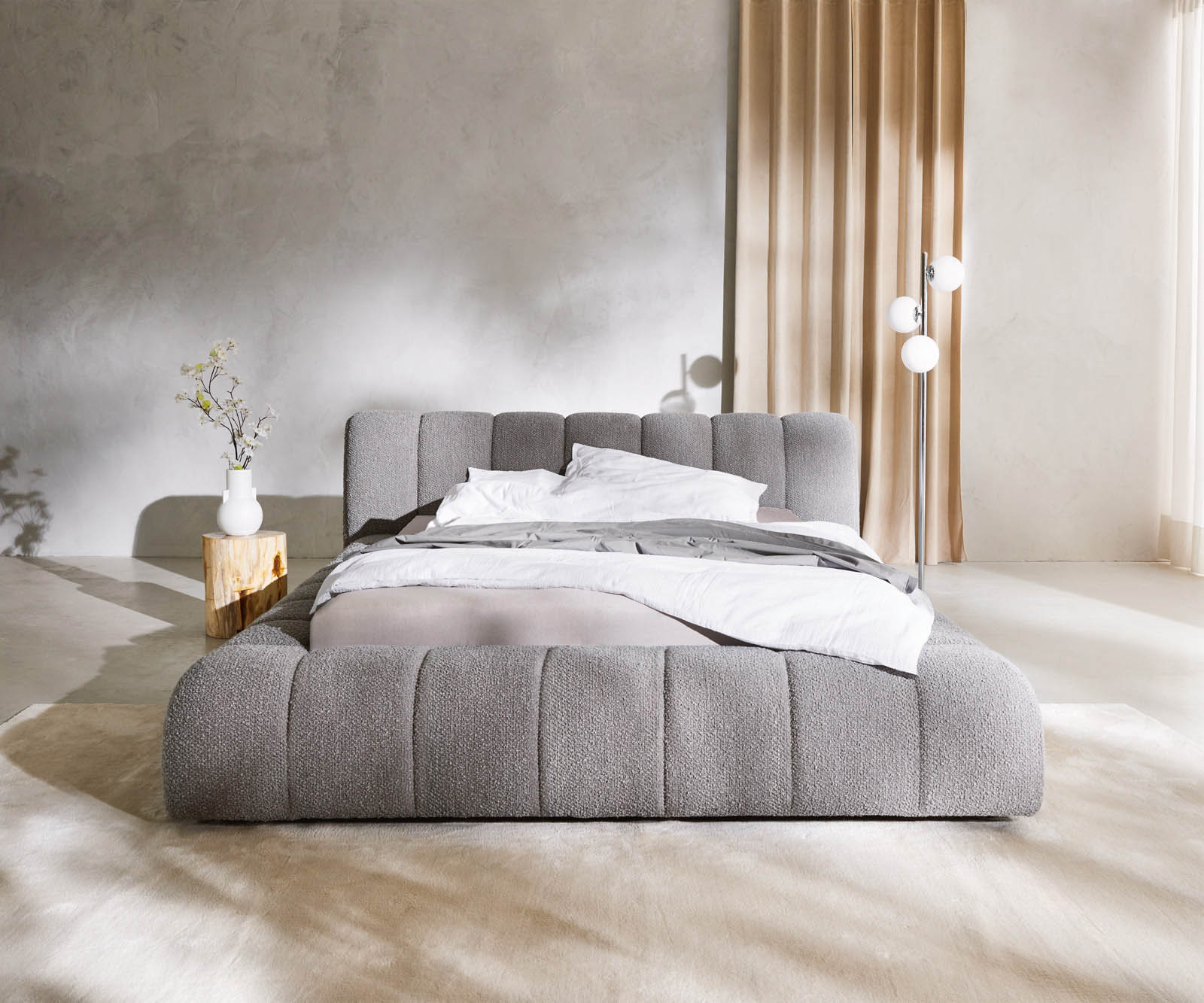 Alakítsd át hálószobádat egy stílusos kényelmi zónává exkluzív Bouclé kárpitozott ágykeretünkkel, amely elegáns ezüstszürke színben készült. Ez a prémium ágykeret finoman strukturált anyagával és impozáns kialakításával minden éjszakát luxus élménnyé varázsol. A téglalap alakú steppelés további design réteget ad hozzá, miközben kellemes tapintást biztosít. Ez az ágykeret tökéletes választás mindazoknak, akik hálószobájuk központi elemét keresik, amely nyugalmat és eleganciát sugároz.