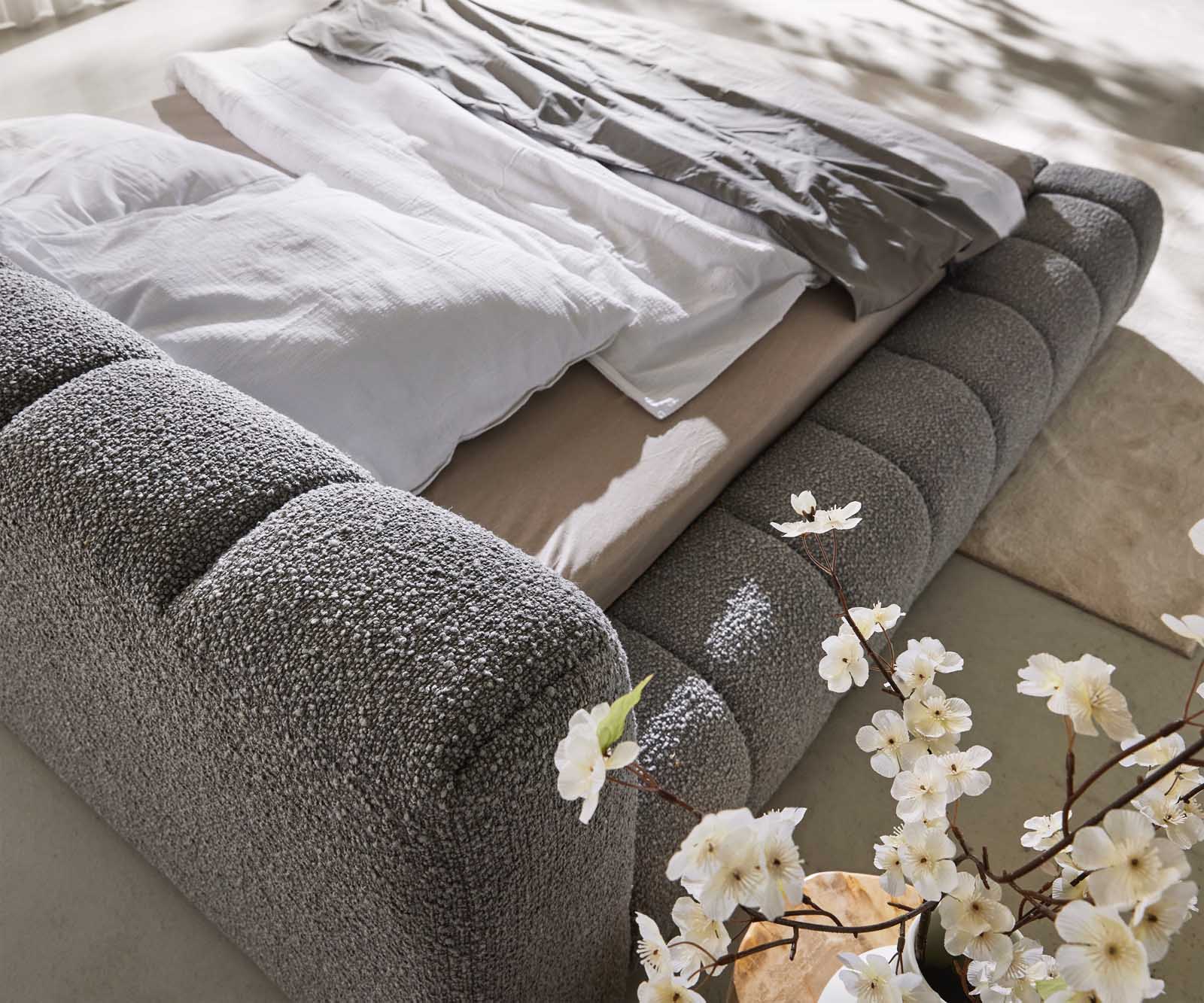 Az ezüstszürke Bouclé sorozatból származó kárpitozott ágykeretünk nemcsak masszív alapot nyújt matracodnak, hanem markáns design elemet is, amely személyiséget kölcsönöz a térnek. A luxus színárnyalat és a terjedelmes kivitelezés kombinációja minden hálószobát gazdagít. Könnyedén illeszkedik különböző berendezési stílusokhoz, és új, elegáns fényben ragyogtatja fel alvóhelyedet. Tapasztald meg, hogyan egyesíti harmonikusan ez az ágykeret a dizájnt és a kényelmet, hogy éjszakáid valódi feltöltődést nyújtsanak.
