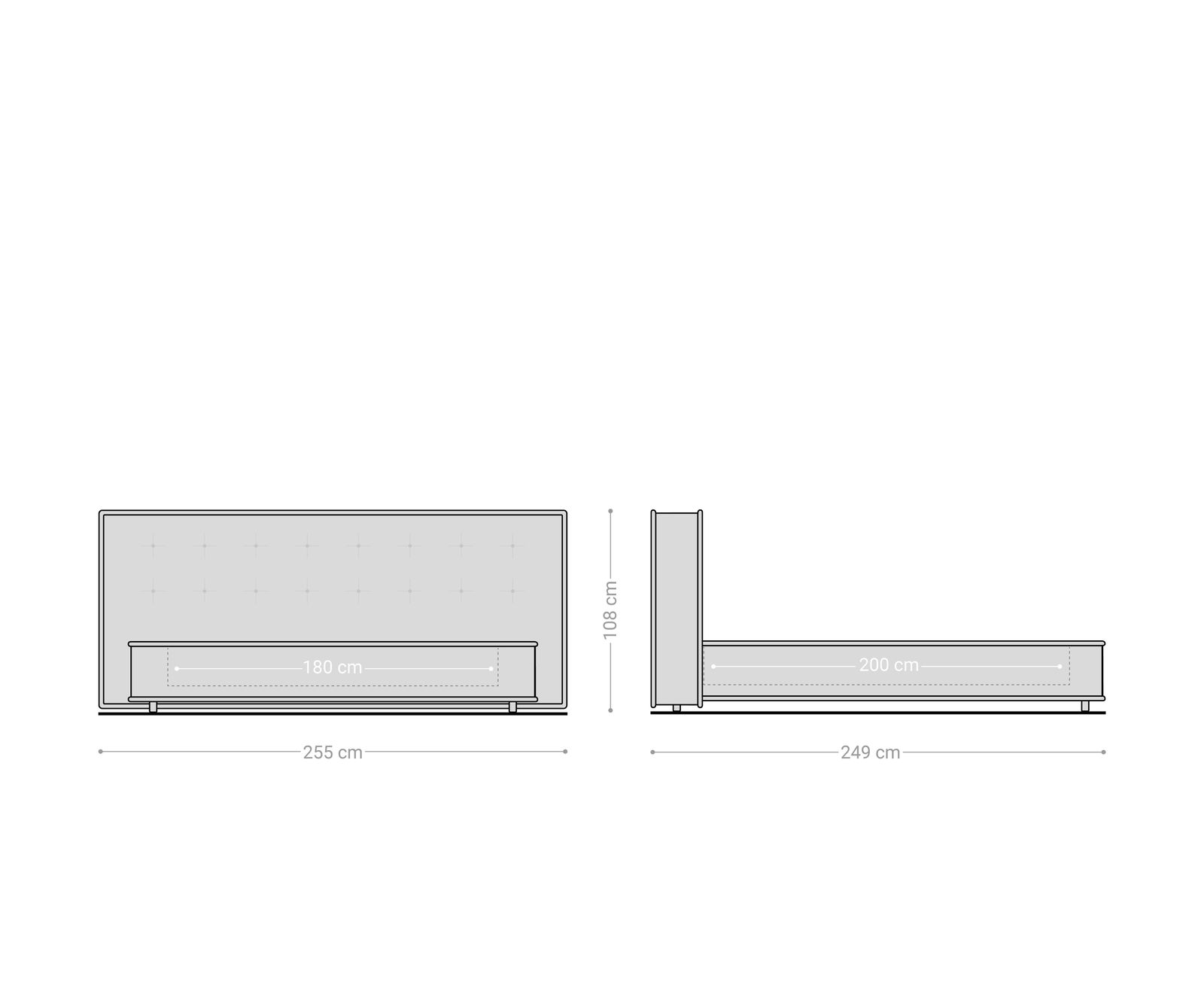 • Kárpitozott ágykeret lattenrost nélkül és matrac nélkül