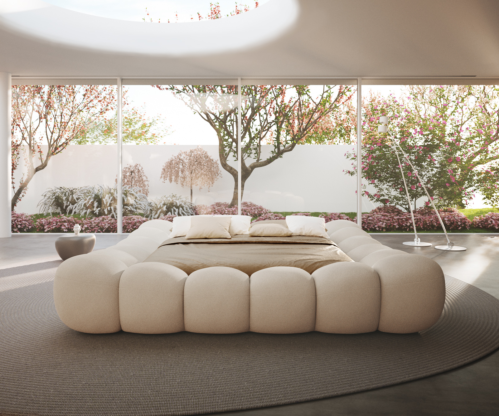 A Perlla Bouclé krémfehér színű kárpitozott ágy, amely teljes mértékben alkalmazkodik az életedhez. Nincs fejvég, nincsenek merev határok – csak lágy, folyékony formák, körben párnázott és puha, akár egy ölelés. A természetes bouclé anyag kellemes textúrát és modern otthonosságot kölcsönöz a dizájnnak.