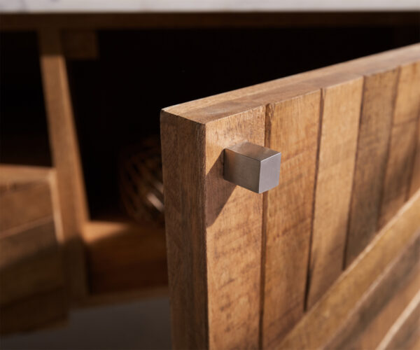 Lenyűgöző megjelenés egyedi karakterrel – ez a Komód Bahan. A design különlegessége egy különleges anyagkombináció márvánnyal. A jellegzetes kőből készült rakodófelület vonzó kontrasztot teremt a masszív fa korpusszal. A fenntartható erdőgazdálkodásból származó mangófa természetes erezete különleges módon emeli ki a márványozás élénk kisugárzását. A magas minőségű rozsdamentes acélból készült fém lábak teszik teljessé a design-t.