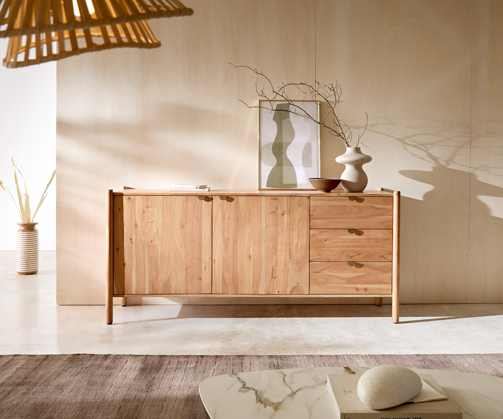 Komód Caius 175 cm akác aura 2 ajtós 3 fiókos