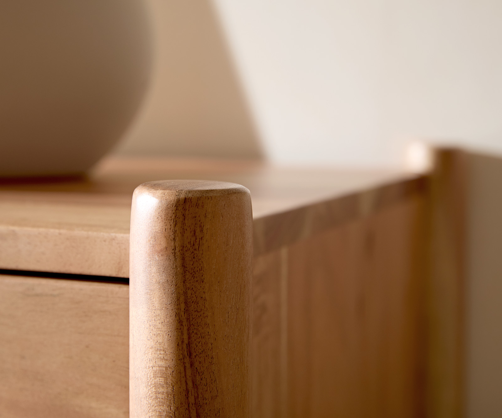 A Caius sorozat a stílusos design és a prémium anyagok szinonimája. Minden bútor ebben a sorozatban gondosan kidolgozott, és hosszú élettartamával valamint funkcionalitásával nyűgöz le. Az Aura színű akácfa komód harmonikusan illeszkedik bármely lakótérbe, és otthonod figyelemfelkeltő darabjává válik. A praktikus elrendezés két ajtóval és három fiókkal változatos lehetőségeket kínál tárgyaid stílusos elhelyezésére és tárolására. Az elegáns, aranyszínű sárgaréz fogantyúk és a maratott élek révén a Caius komód valódi ékkővé válik nappalidban. A Caius sorozattal harmonikus és meghitt légkört teremthetsz, amely valóra váltja lakberendezési álmaidat.