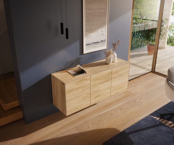 Kiváló minőségű olasz Laminam® kerámia, amely híres kifinomult esztétikájáról, könnyű ápolhatóságáról és ellenállóságáról, meleg csillogást kölcsönöz a CUOR komódnak, finom árnyalatokkal, amelyek nemes tölgyfára emlékeztetnek. A velencei lagúna homokjának finom színjátékából inspirálódva mélység, struktúra és természetes harmónia bontakozik ki – egy ikonikus designban, amely a karaktert és az időtlenséget tökéletesen egyesíti. Még lenyűgözőbb hatás érdekében a bútordarabot stabil tartóval közvetlenül a falra szerelik. A lebegő megjelenés könnyedséget és különösen harmonikus megjelenést kölcsönöz.