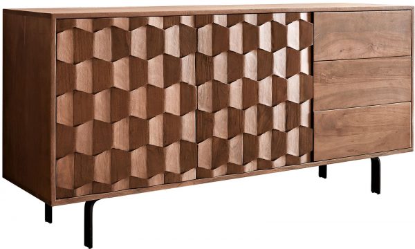 Az akácfa finom erezetével és matt barna árnyalatával nemes hatást kelt. A stílusos komód 175 cm szélességen két praktikus ajtó és három fiók mögött rendezett tárolóhelyet biztosít.