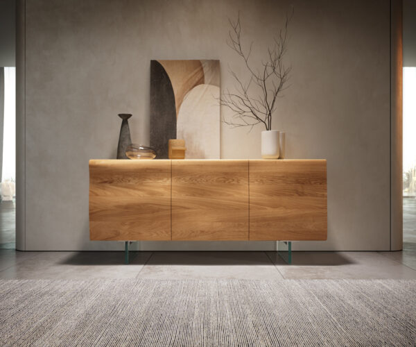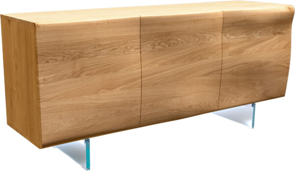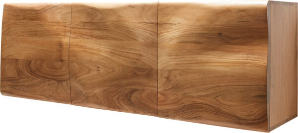 Hozz egy darabka természetet az otthonodba a New Live-Edge sorozatú komóddal. A művészien megformált előlapja a fa élének lágy formáival minden darabot igazi egyedivé varázsol. A masszív tölgyfa természetes erezete különleges látványosság, amely értéket ad a helyiségnek. A három ajtó rengeteg tárolóhelyet kínál a rend megteremtéséhez.