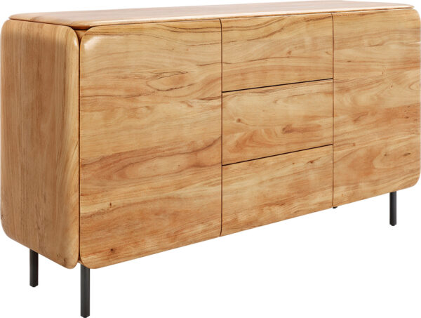 Komód Shavani 145 cm akác természetes 2 ajtós 3 fiókos ovális fém láb fekete