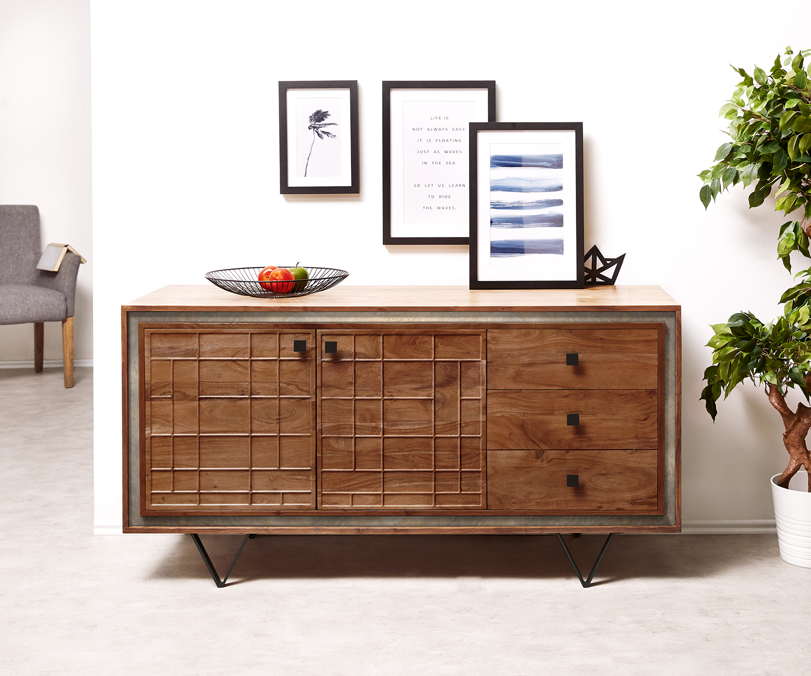 A Stonegrace komóddal egy exkluzív design darabot varázsolhatsz otthonodba. Különösen kemény akácfából készült, gyönyörű, meleg barna árnyalatban, a komód két kézzel faragott ajtóval lenyűgöz, amelyek feltűnően szép 3D hatásukkal minden tekintetet magukra vonzanak. A világos furnér valódi kőfurnérból készült keretet alkot a komód körül, amely elegánsan emeli ki a barna színt. A két ajtó mellett három fiók is bőséges tárolóhelyet kínál.